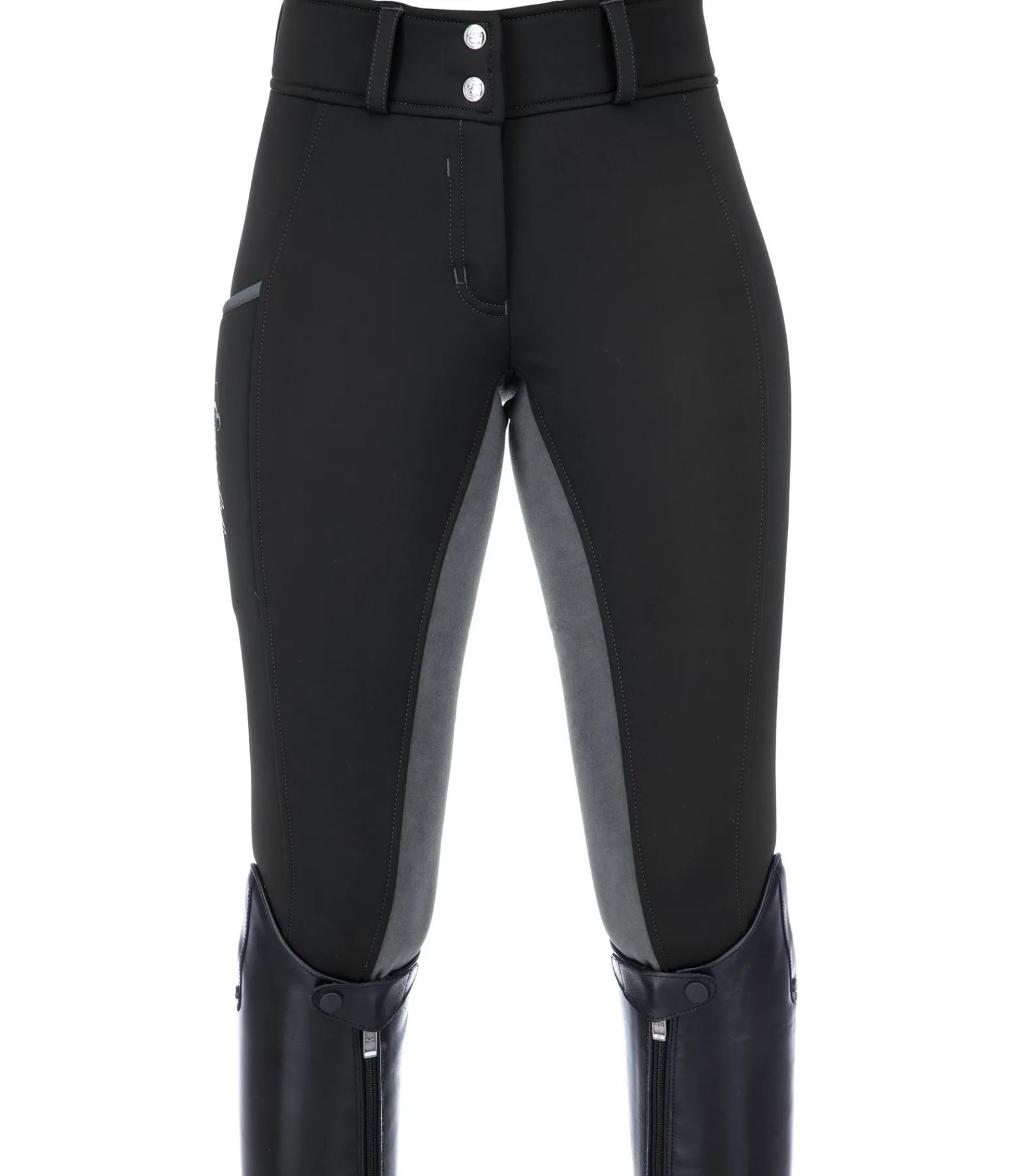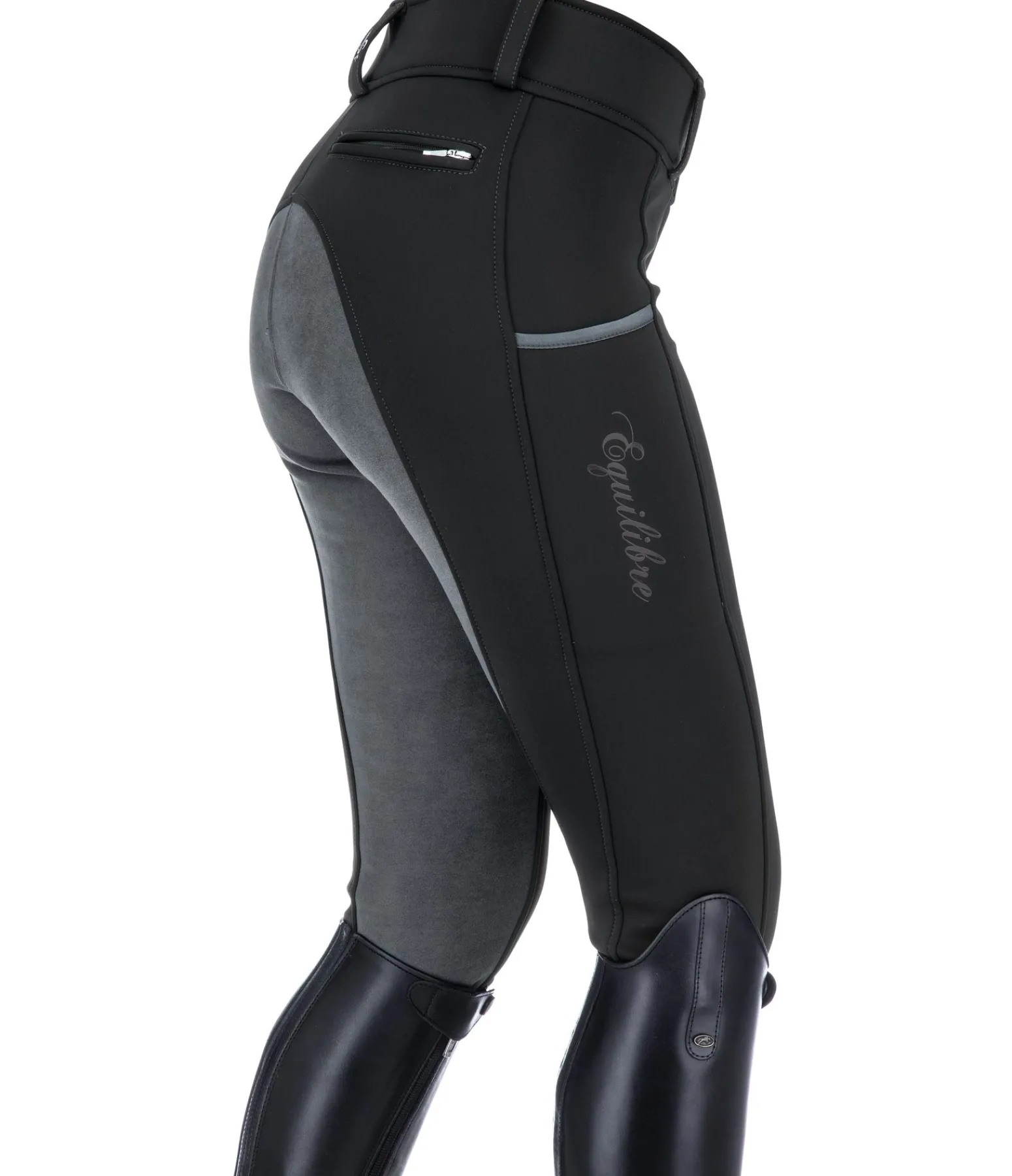 Pantalon d’équitation d’hiver coupe-vent et chaud. Fond intégral extensible en synthétique. Intérieur molletonné et doux. Bas de jambe extensible sans patte auto-agrippante. Large ceinture extensible. Une grande poche pour téléphone portable sur la cuisse et une poche arrière zippée. Matière extérieure 88 % nylon, 12 % élasthanne, doublure 100 % polyester.