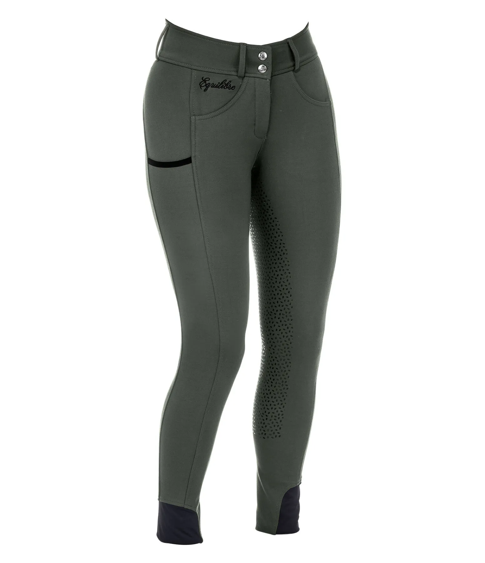 Pantalon d’équitation taille haute. Matière souple super confortable et extensible. Fond intégral grip en silicone. Aucune couture au niveau des genoux. Une poche latérale pour téléphone portable et une poche arrière zippée. Broderie sur l’avant et l’arrière. Bas de jambe extensible sans patte auto-agrippante. 68 % viscose, 27 % nylon, 5 % élasthanne.