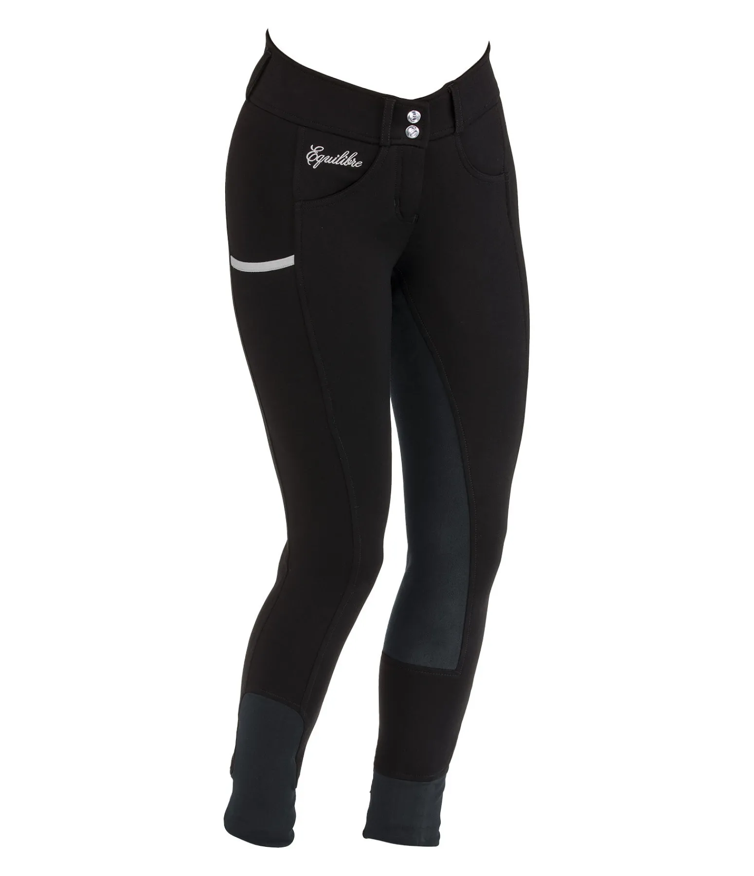 Pantalon d’équitation confortable. Taille haute. Fond intégral en synthétique. Matière stretch, respirante à séchage rapide, extensible dans 4 directions. Une poche latérale pour téléphone portable et une poche zippée arrière. Broderies. Bas de jambe extensible sans patte auto-agrippante. 68 % viscose, 27 % nylon, 5 % élasthanne.