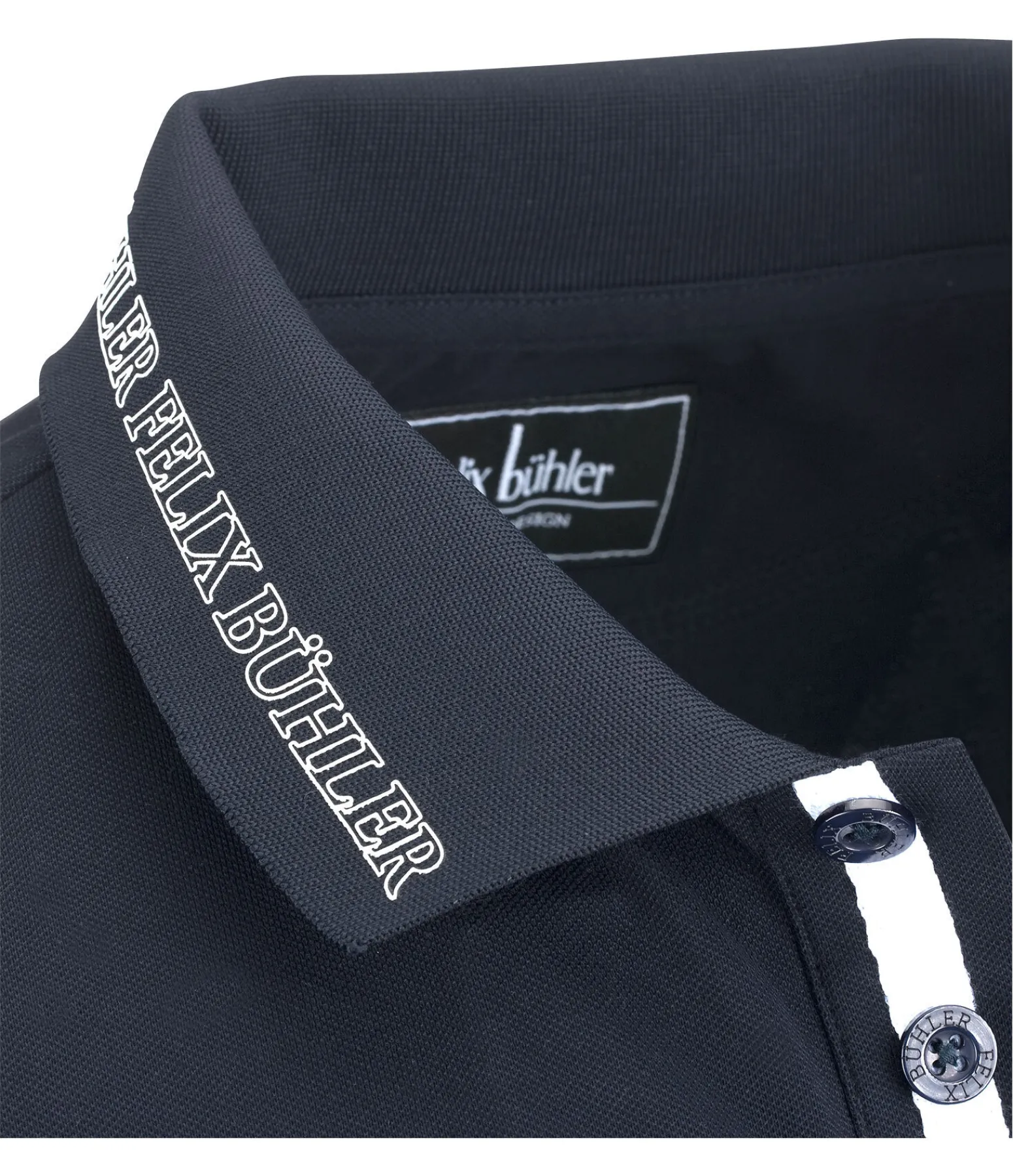 Polo à séchage rapide avec logo Felix Bühler sur la poitrine et inscription sur le col. 50 % polyester, 46 % coton, 4 % élasthanne.