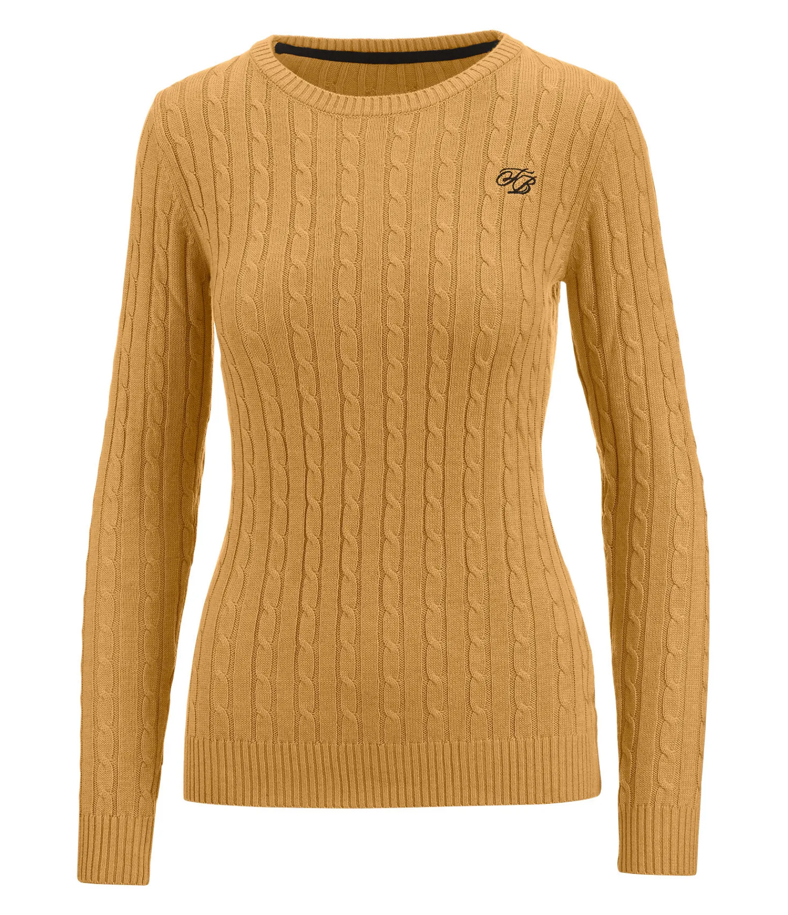 Pull-over à col rond en maille torsadée. Broderie logo Felix Bühler sur la poitrine. Finitions côtelées. 50 % viscose, 30 % polyester, 20 % nylon.