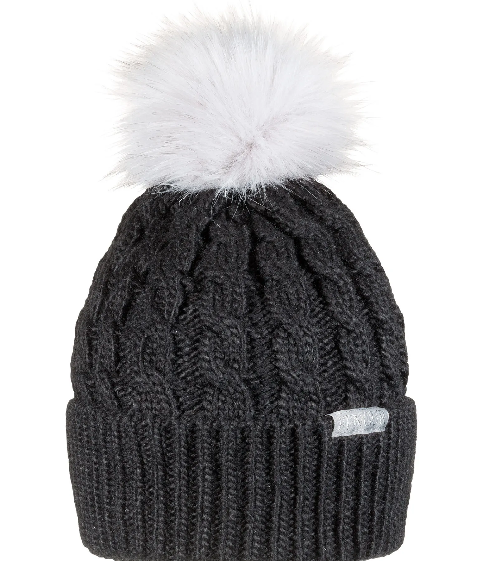 Bonnet à motif torsadé chic et pompon en imitation fourrure. Doublure en polaire pour les froides journées d’hiver. Intérieur 100 % polyester. 100 % polyacrylique. Lavage à la main.