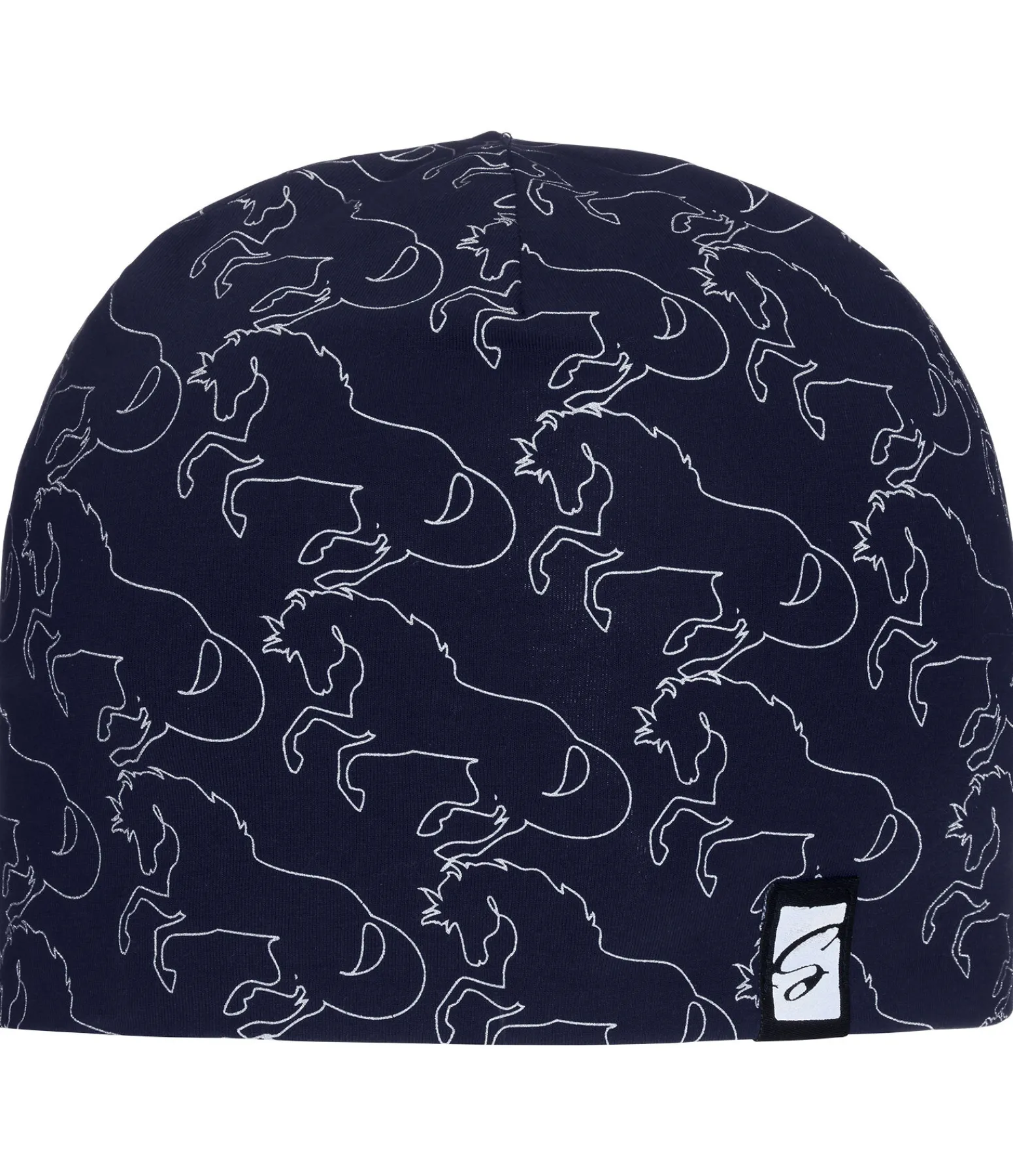 Bonnet fin pour enfant en jersey avec imprimé réfléchissant et logo STEEDS. Passe parfaitement sous le casque, réversible. 65 % coton, 35 % polyester.