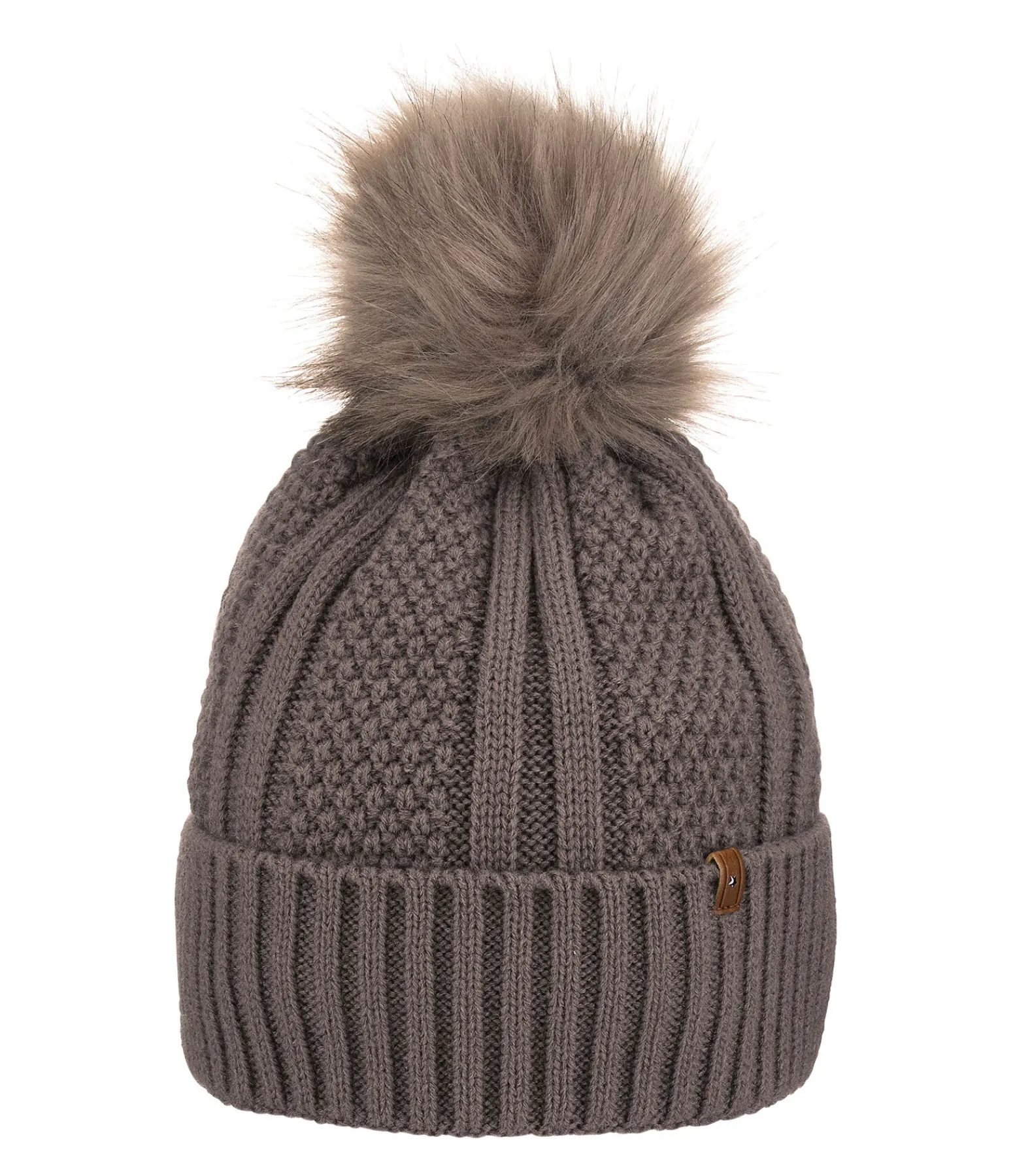 Bonnet à revers en maille avec pompon en fourrure synthétique. Doublure intérieure en polaire chaude. 100 % polyacrylique, doublure 100 % polyester.