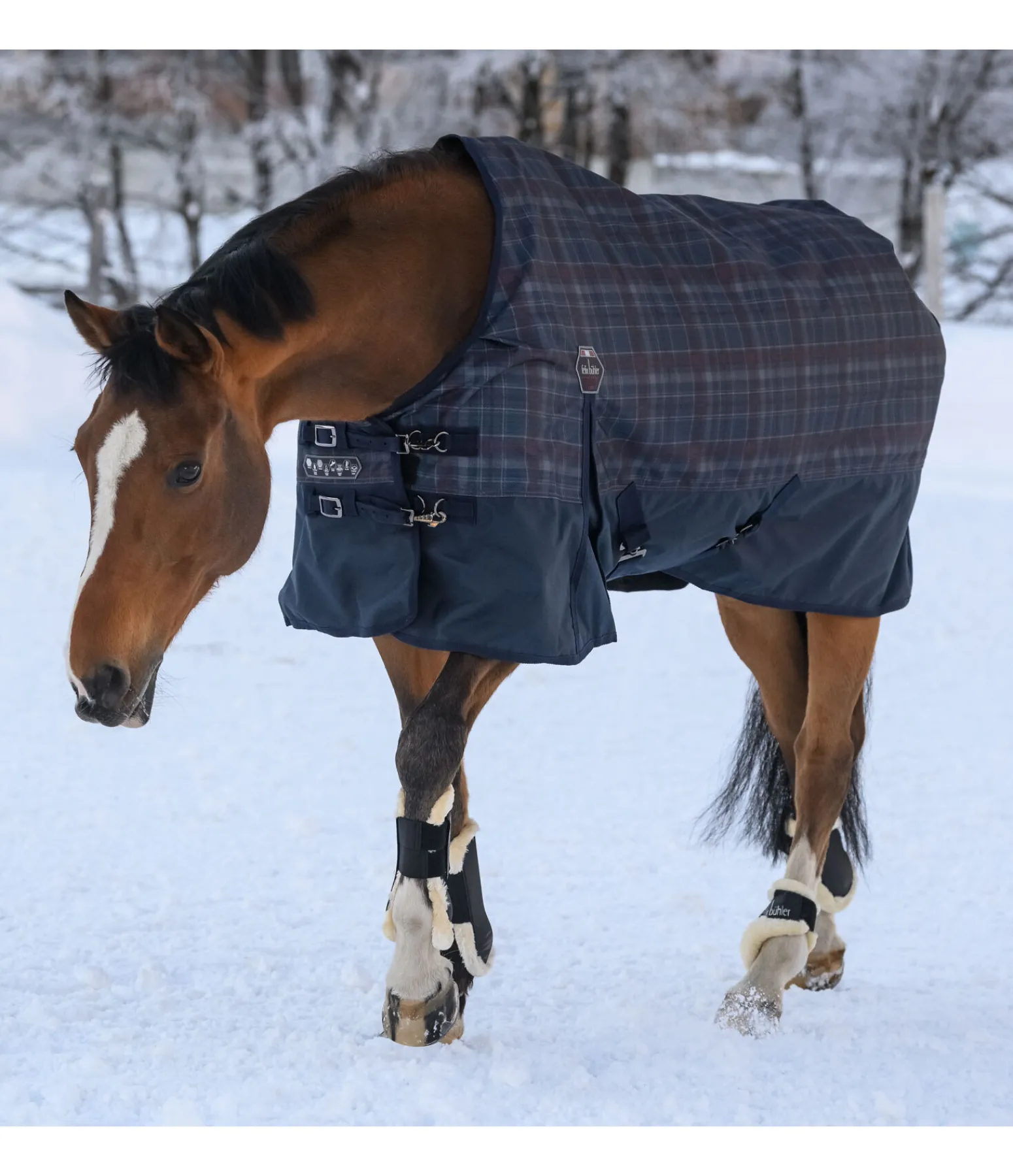 Chemise d’extérieur particulièrement résistante, imperméable et respirante (colonne d’eau 3 000 mm) en maille robuste Ripstop à carreaux (1 200 deniers). Rembourrage intérieur confortable pour limiter les pressions dans la zone du garrot. Doublure intérieure lisse protégeant la robe. Double fermeture de poitrail réglable avec mousquetons, anneaux en D et patte auto-agrippante supplémentaire. Grands plis d’aisance pour une liberté de mouvement optimale. Sursangles croisées et courroie de queue réglables, anneaux permettant de fixer des courroies de cuisses (non incluses) et rabat de queue. 100 % polyester.