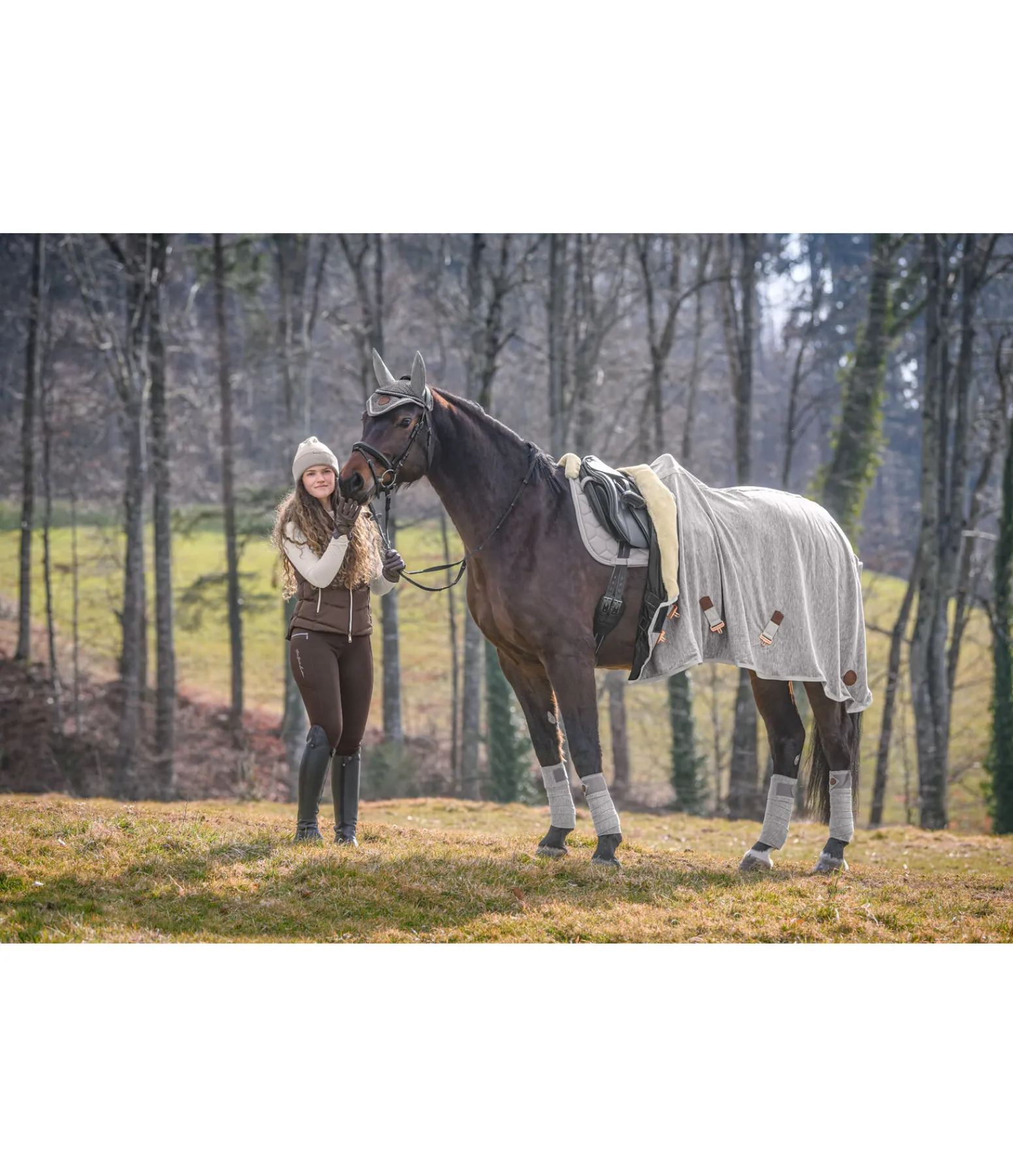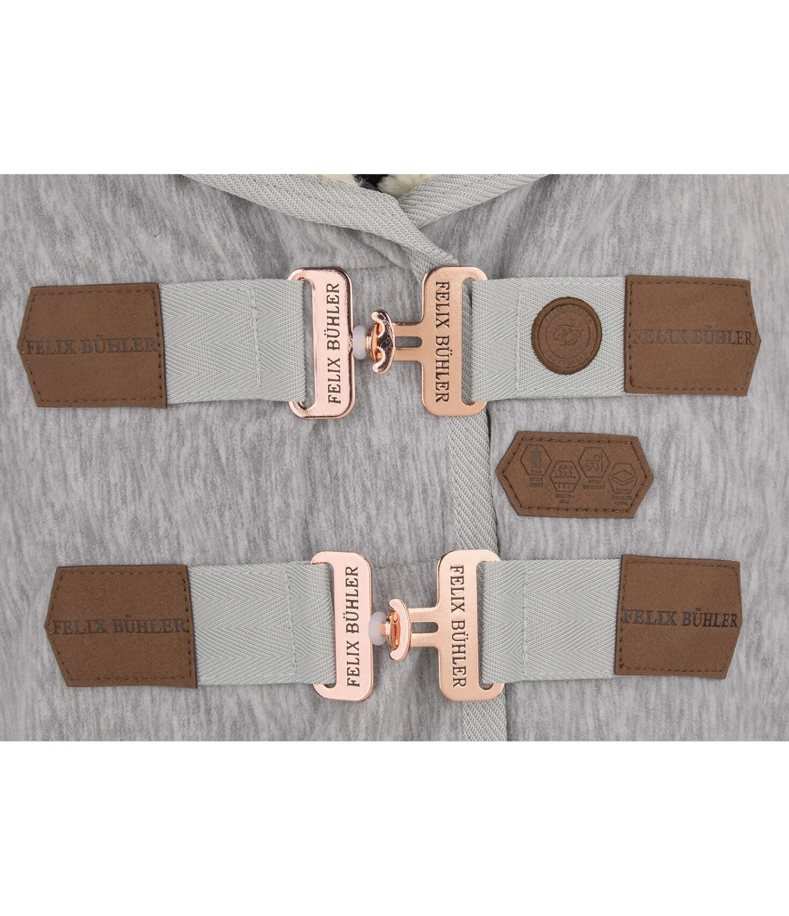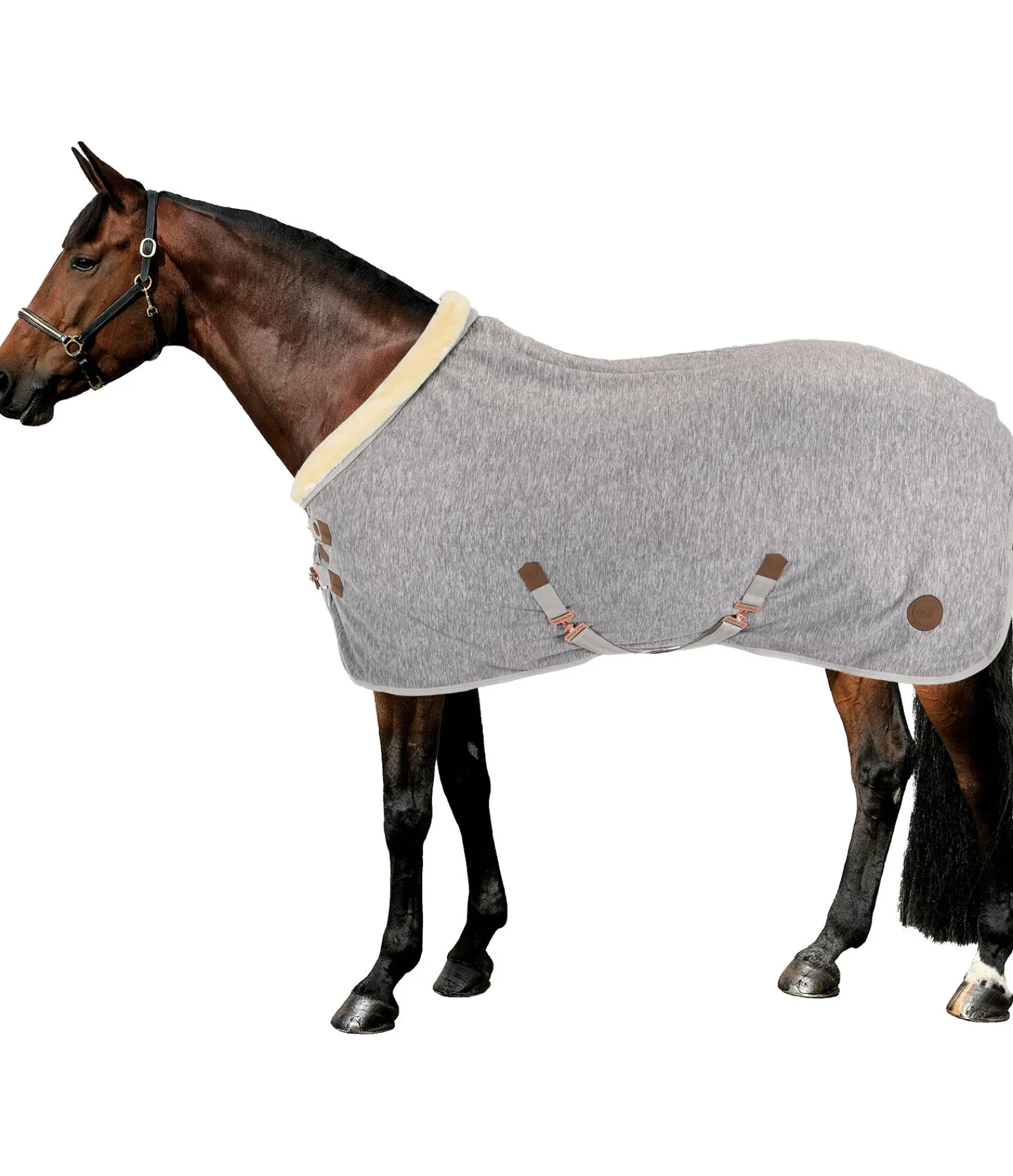 Chemise séchante en tricot polaire chiné avec col en polaire Teddy douce. Assortie à la collection Felix Bühler Knitted. Garde le cheval bien au chaud avant et après le travail et favorise l’évacuation de la transpiration et de l’humidité. Logo en velours synthétique embossé. Double fermeture de poitrail avec crochets en T et patte auto-agrippante supplémentaire, doublure intérieure lisse protégeant la robe au niveau des épaules. Équipée de sursangles croisées et d’une courroie de queue réglables. 100 % polyester.