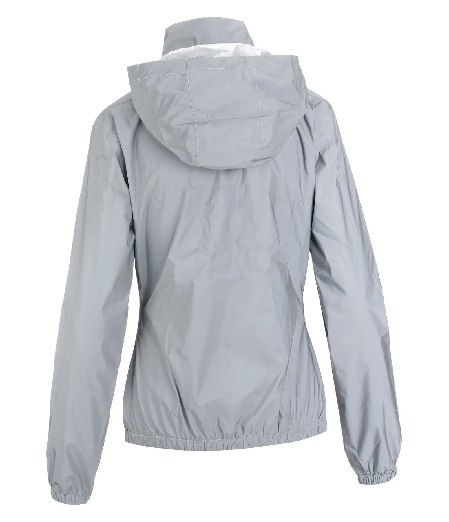 Joli coupe-vent imperméable. Matière réfléchissante avec intérieur en tissu mesh léger. Capuche repliable dans le col. Fermeture à glissière double sens. 2 poches zippées dissimulées. Poignets élastiqués. 100 % polyester.