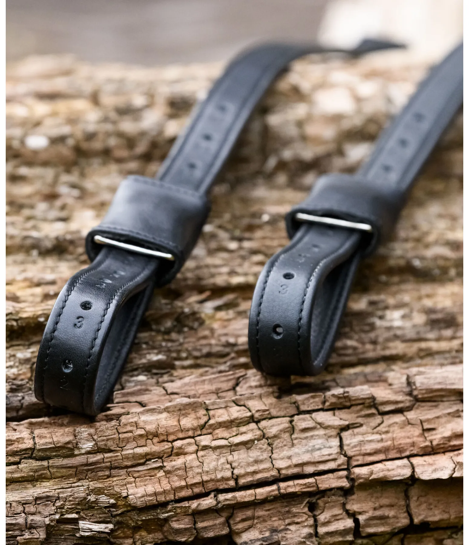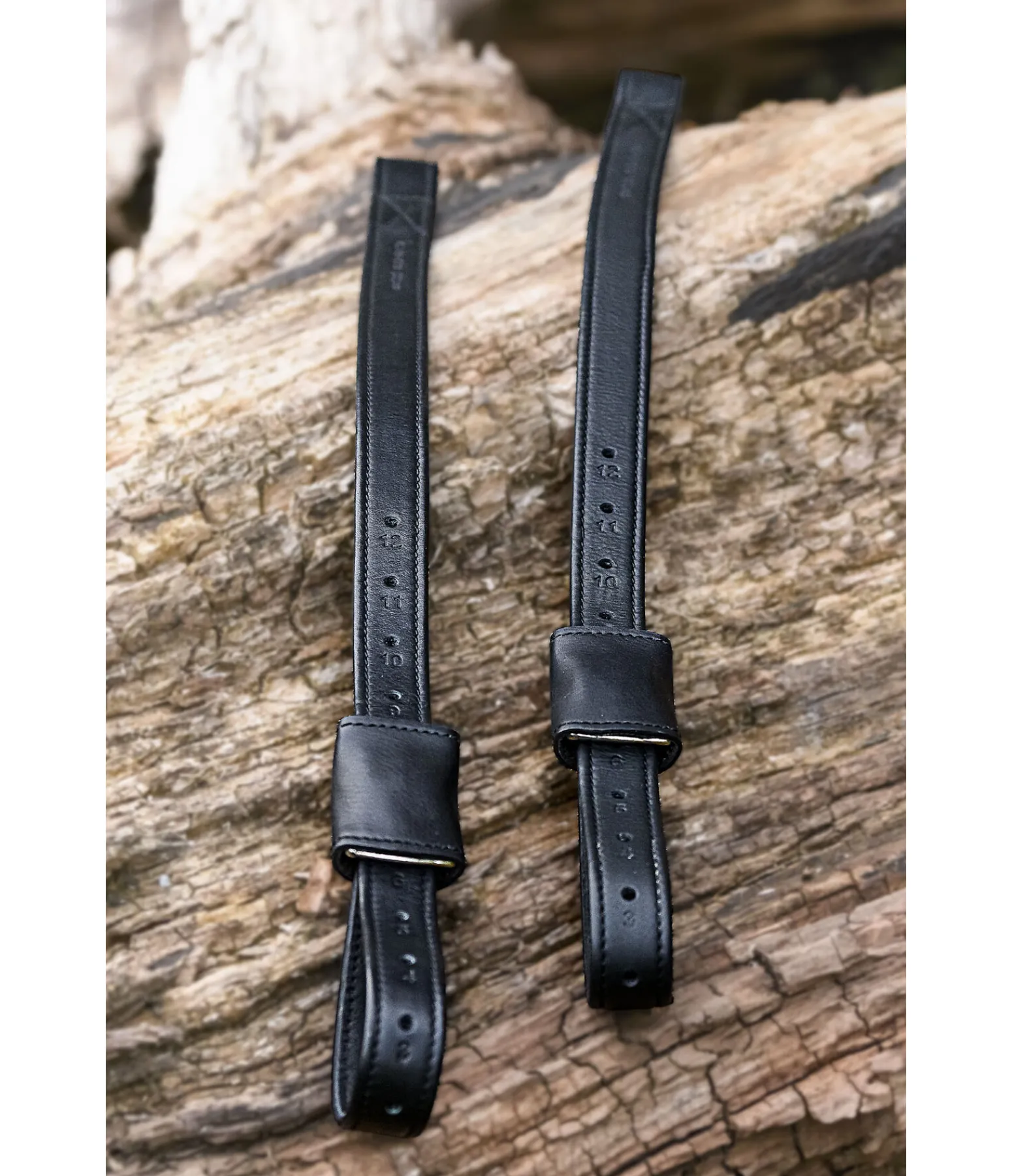 Étrivières courtes résistantes en cuir véritable pour régler rapidement et facilement la longueur des étriers. Boucles argentées dissimulées en acier inoxydable. Largeur 2,55 cm.