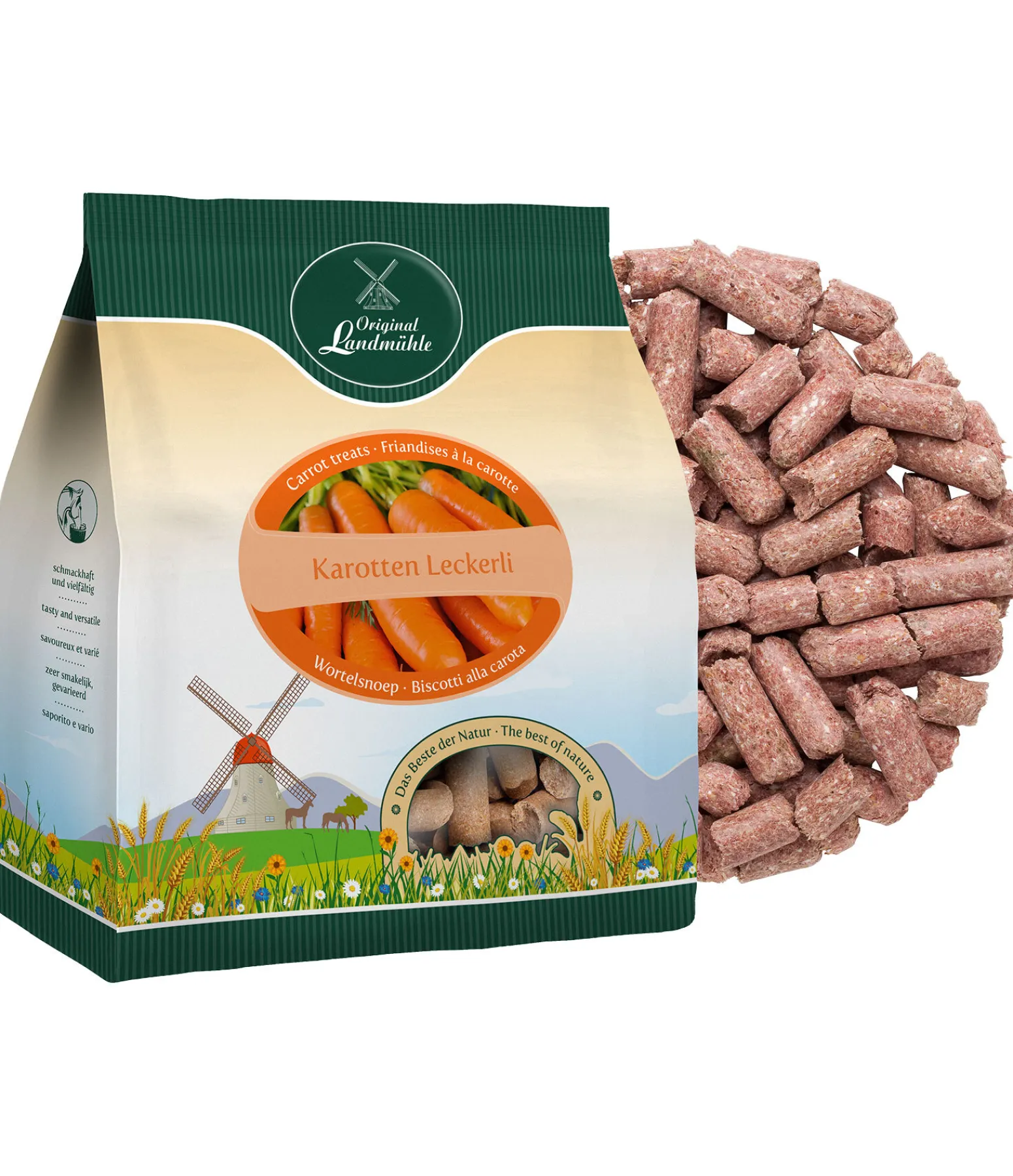 Une récompense délicieuse, sans mauvaise conscience. Les friandises Original Landmühle contiennent exclusivement des ingrédients de grande qualité. Ces friandises à la carotte ne s’émiettent pas, ne collent pas dans les poches et ne moisissent pas comme les carottes ou le pain par exemple. Ces friandises saines à la carotte sont toujours à portée de main lorsque cous allez chercher votre cheval au pré, lors du pansage, ou en selle.