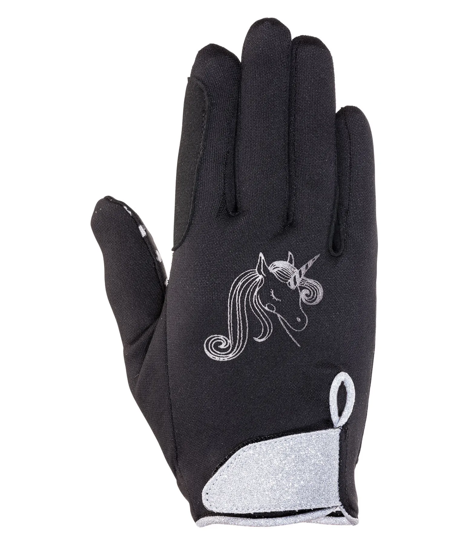 Gants d’hiver en polaire décorés de paillettes. Motif licorne sur le dos de la main. Imprimé coeurs en silicone sur la paume pour une bonne adhérence des rênes. 100 % polyester.