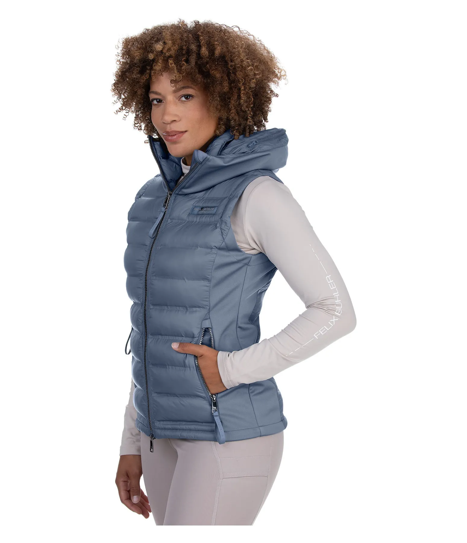 Superbe gilet en softshell extensible et nylon avec un garnissage très doux en imitation duvet devant et derrière. Coupe-vent. Double col et capuche rembourrée repliable dans le large col extérieur par fermeture à glissière, coutures thermosoudées, fermeture à glissière double sens avec sous-patte et protège-menton, 2 poches zippées devant. Logo élaboré sur la manche et le col. Avant, dos, col intérieur et capuche 100 % nylon, matière softshell 92 % polyester, 8 % élasthanne.