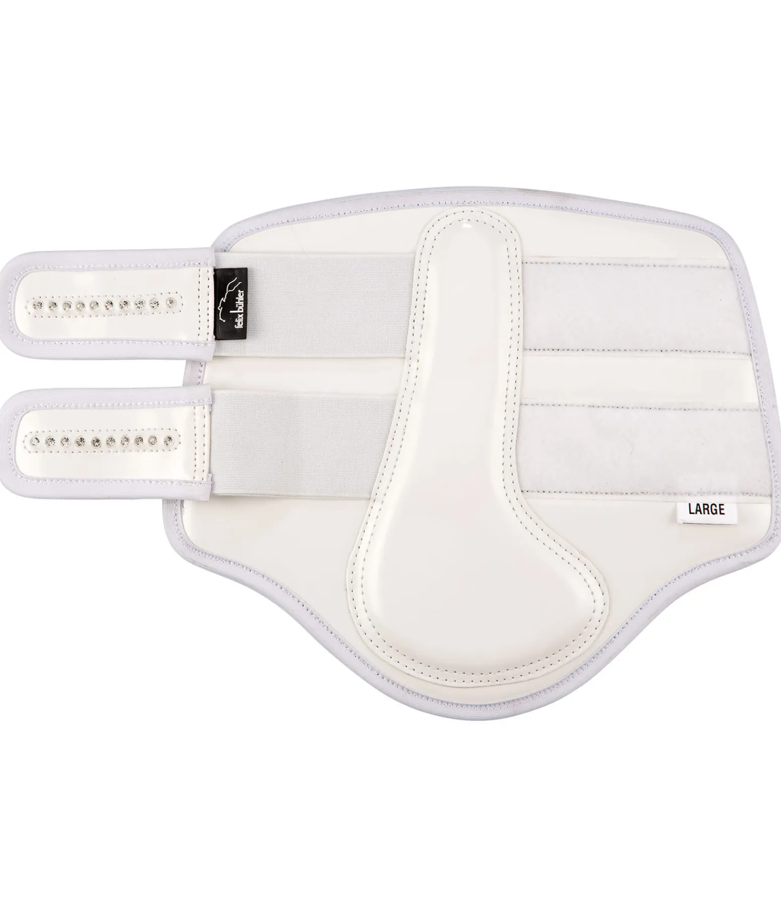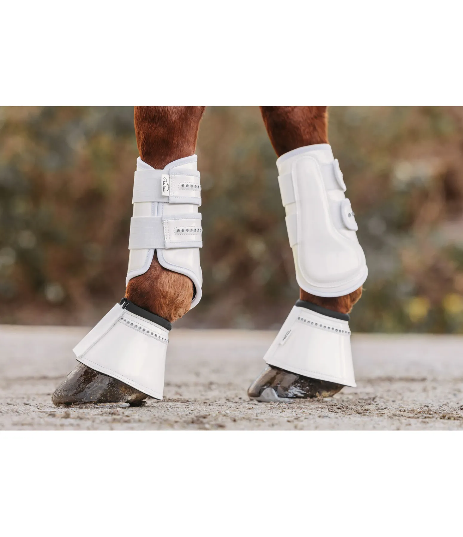 Guêtres anatomiques et élégantes en matière synthétique à l’aspect verni. Avec strass. Doublure intérieure en caoutchouc chloroprène souple pour une protection optimale contre les chocs. Vendues par paire.
