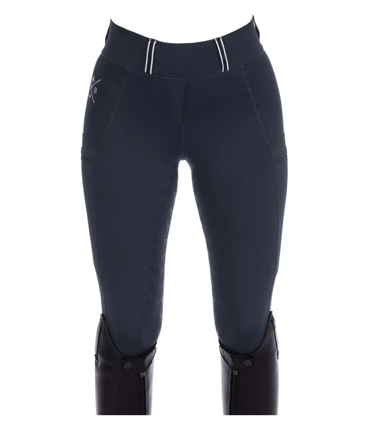 Legging d’équitation sportswear à fond intégral grip en silicone. Matière respirante de grande qualité, extensible dans 4 directions. Séchage rapide. Ceinture extra large avec passants dotés d’une bordure de couleur contrastante. 2 poches latérales pour téléphone portable. Aucune couture au niveau des genoux. Bas de jambe extensible. Imprimés Felix Bühler. 2 fausses poches arrière avec bande scintillante. 85 % nylon, 15 % élasthanne.