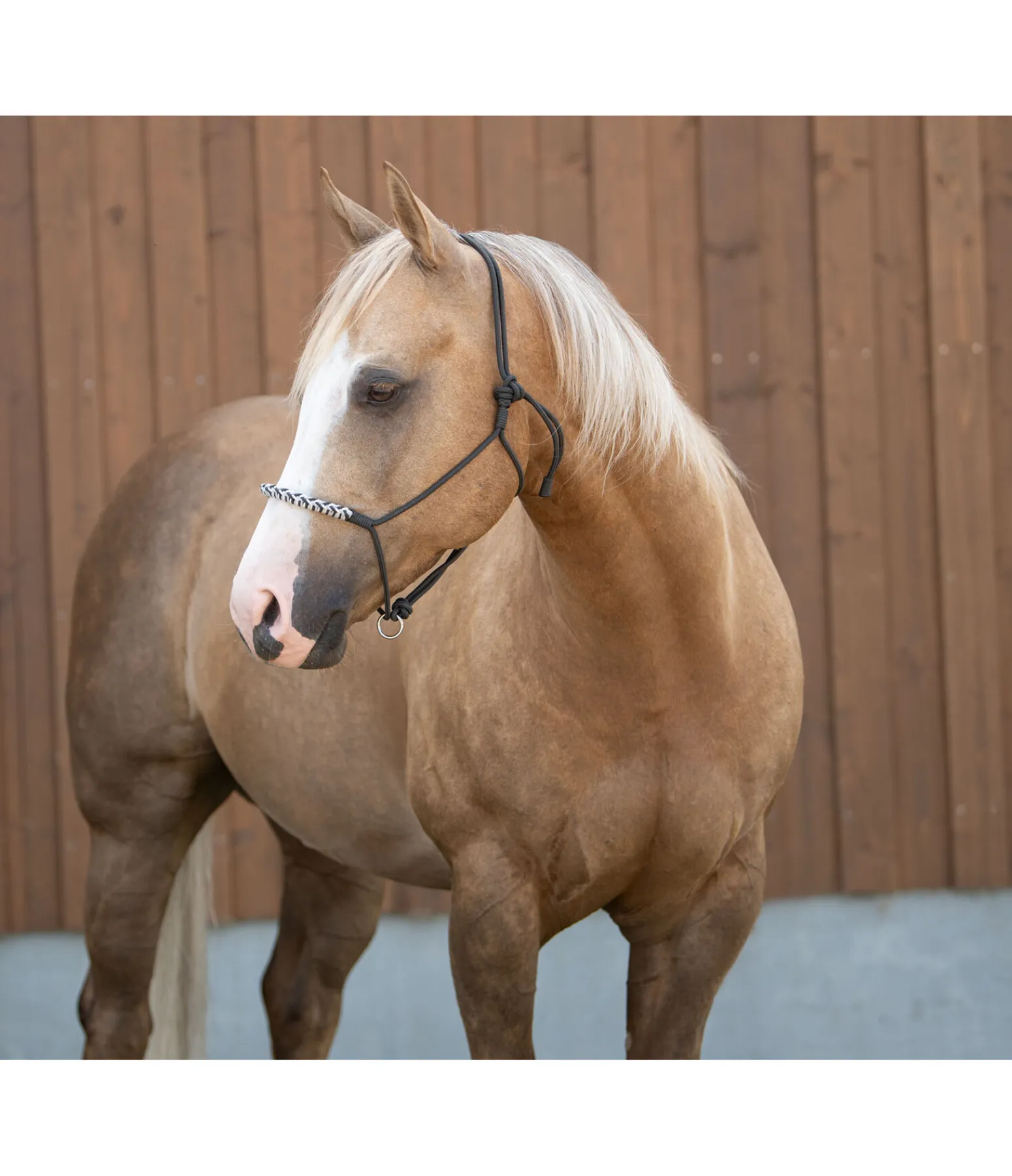 Licol en corde. Anneau coulissant. Sans noeuds. Ne glisse pas en cas de traction latérale, pour une communication précise avec le cheval. Muserolle renforcée. Épaisseur de la corde 6 mm. 100 % polypropylène.