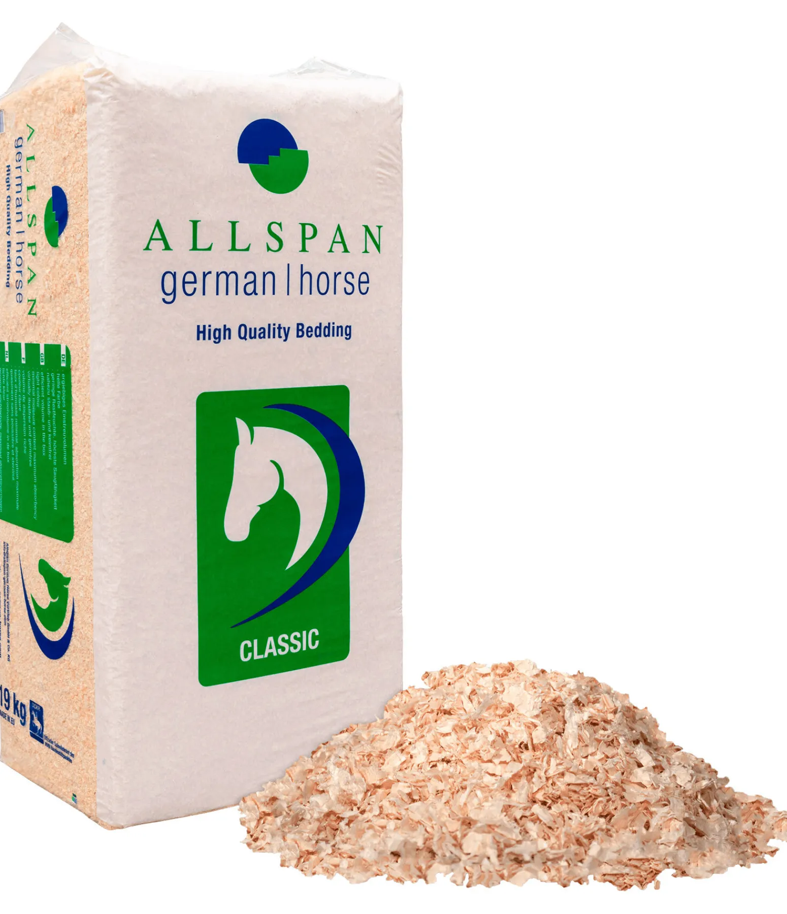 Le grand classique Allspan German Horse Classique a fait ses preuves parmi les articles de litière. La litière de couleur claire en copeaux de bois tendre apporte une solution convaincante dans l’écurie par son pouvoir absorbant élevé et son volume de litière optimal. Les copeaux de bois tendre garantis 100% non traités sont conditionnés dans des ballots compressés pratiques. Ceci garantit une manipulation aisée lors du travail quotidien dans l’écurie.