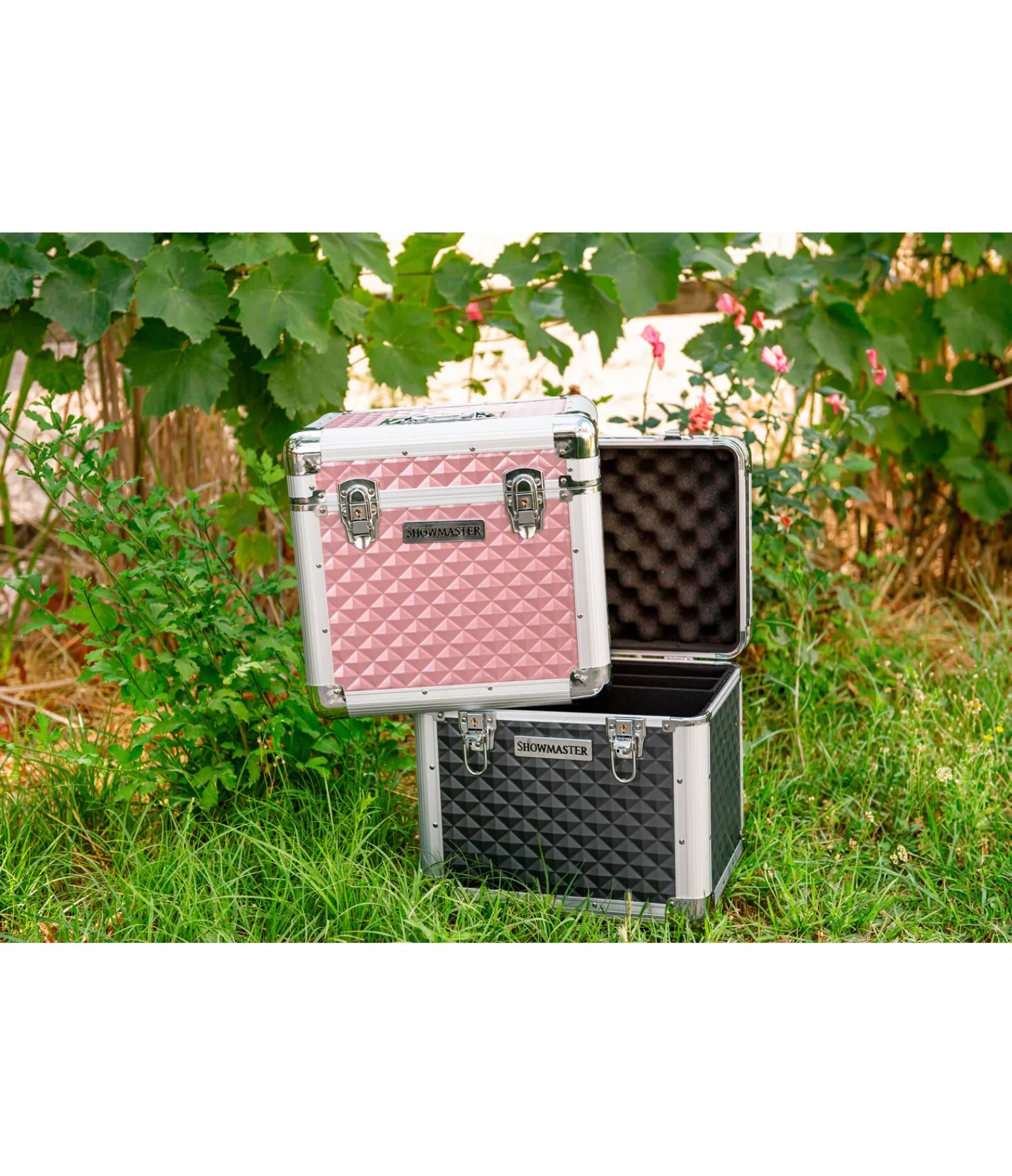 Malette de pansage de grande qualité avec cadre résistant en aluminium. Surface structurée à motifs diamants, dans un look métallisé tendance. Intérieur totalement rembourré, avec séparation au milieu et petit compartiment amovible. Avec poignée encastrée. Verrouillable. 34 x 28 x 32 cm.