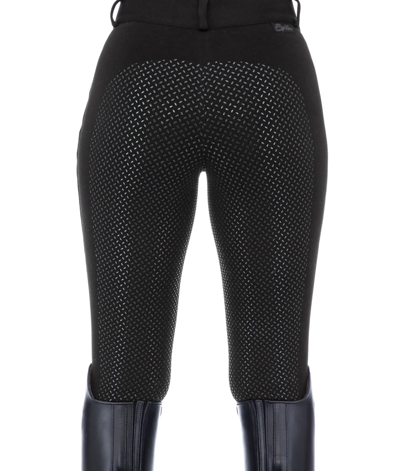 Rapport qualité-prix imbattable ! Pantalon d’équitation confortable. Fond intégral grip en silicone pour une parfaite adhérence en selle. Large ceinture élastiquée. Matière extensible et extra souple. Aucune couture au niveau des genoux. 1 poche avant zippée. Bas de jambe extensible sans patte auto-agrippante. 95 % coton, 5 % élasthanne.