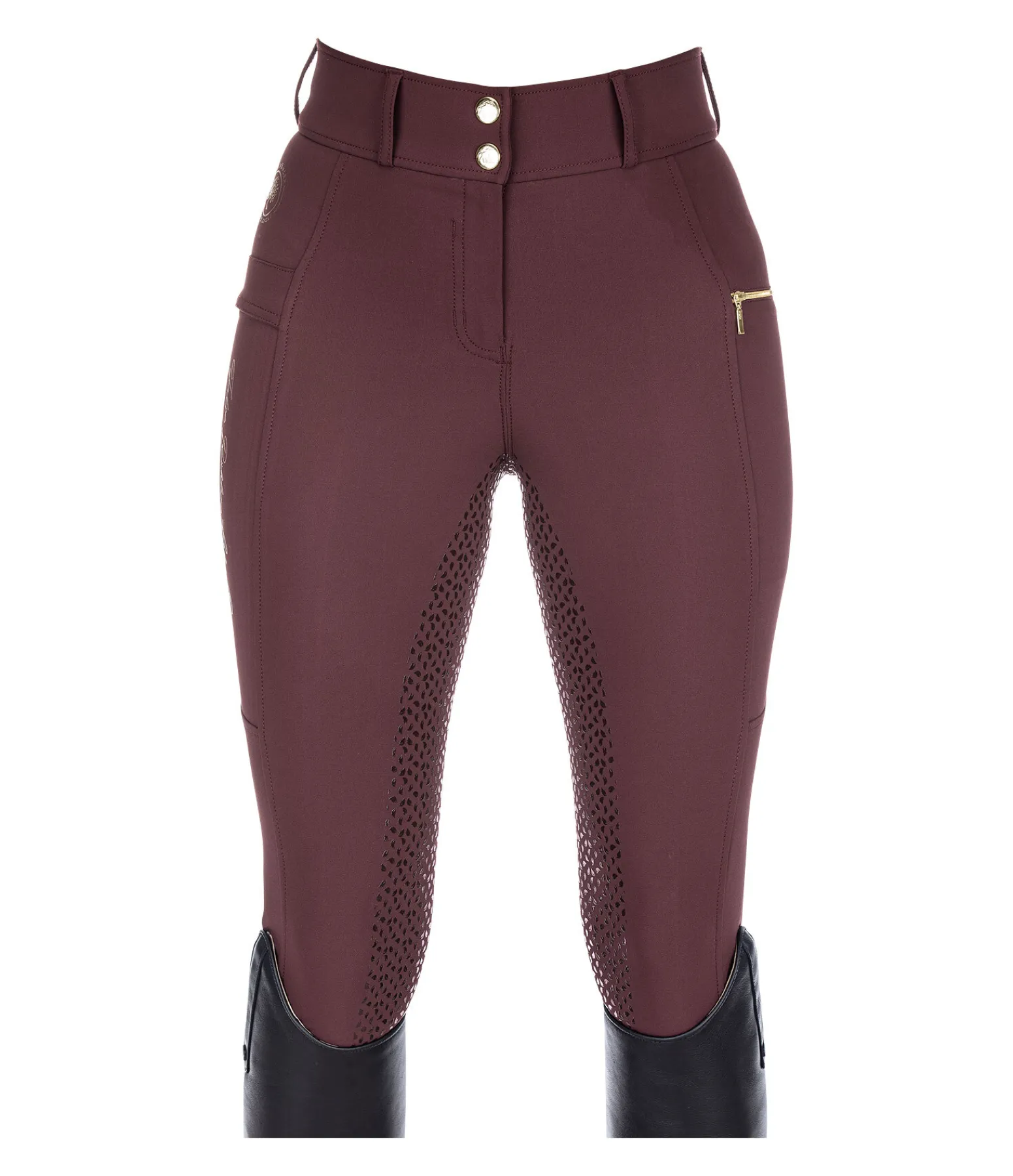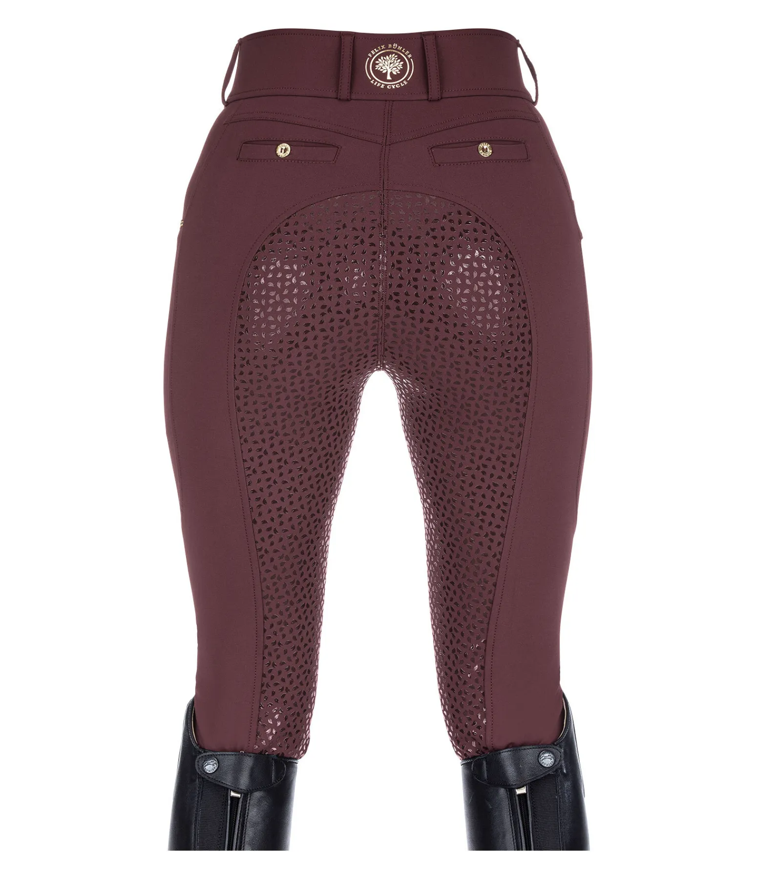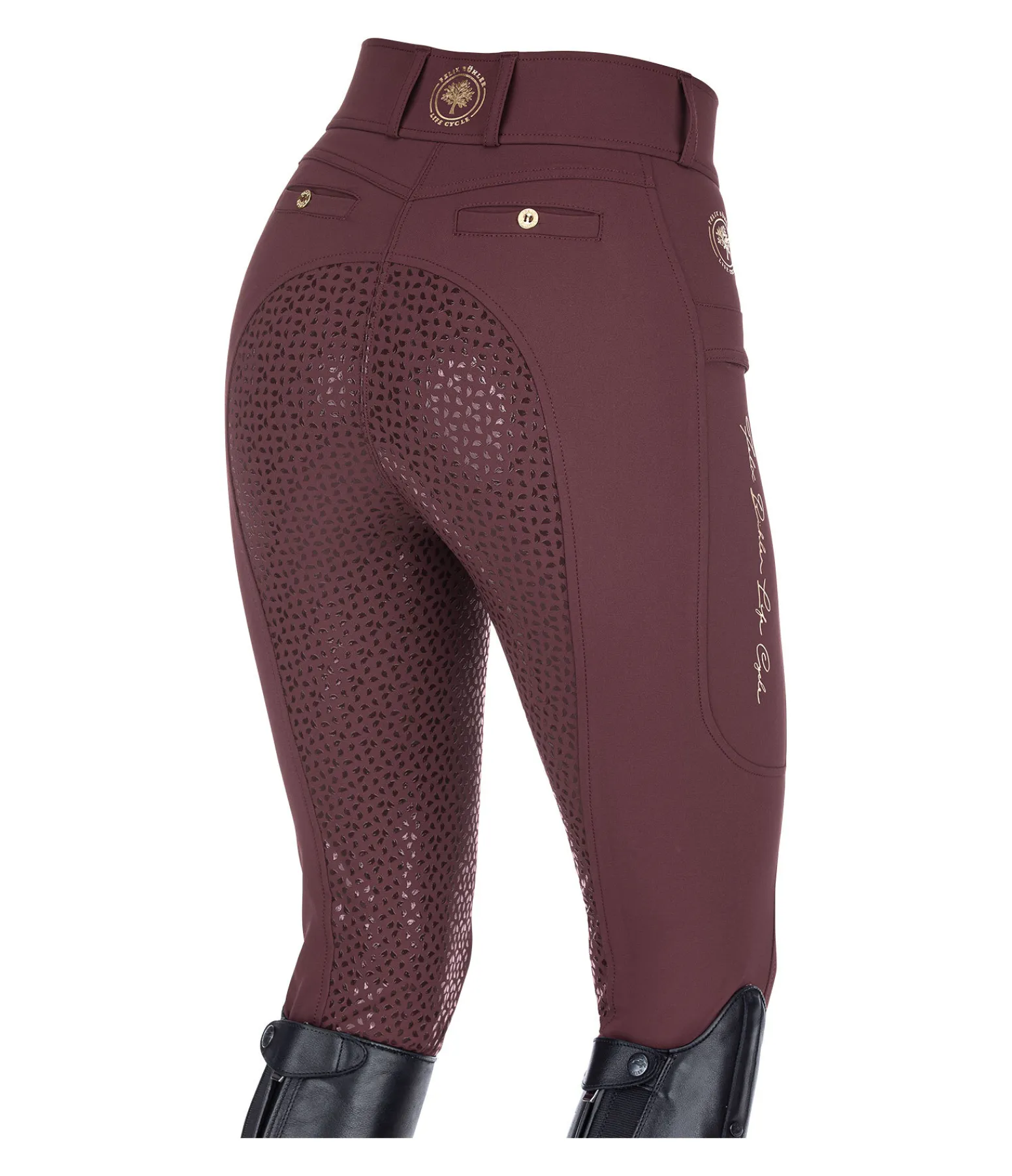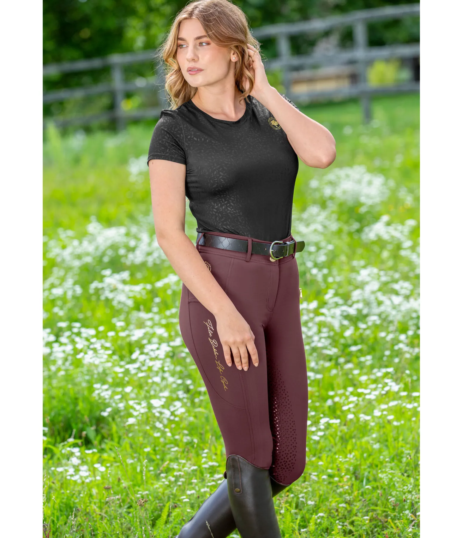 Durable et confortable ! Pantalon d’équitation à fond intégral grip en silicone extrêmement agréable à porter. Conçu principalement en stretch recyclé de grande qualité. Imprimés Felix Bühler Life Cycle. Matière respirante. Séchage rapide. 2 poches arrière et 2 poches latérales pour téléphone portable, dont une avec fermeture à glissière. Ceinture extra large avec 2 boutons. Aucune couture au niveau des genoux. Bas de jambe extensible en stretch. 89 % polyester, 11 % élasthanne.
