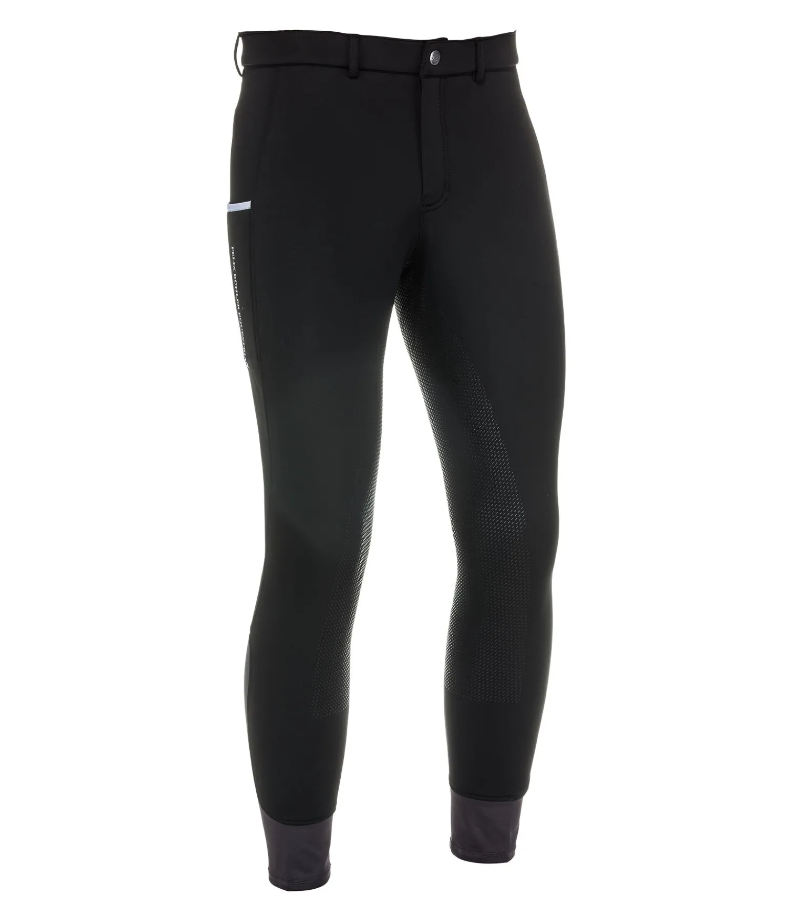 Pantalon d’équitation thermique et chaud avec fond intégral grip en silicone. Matière déperlante et respirante. Une poche latérale pour téléphone portable avec impression Felix Bühler et une poche zippée arrière. Logo discret à l’arrière. Bas de jambe extensible sans patte auto-agrippante. Ceinture élastiquée avec passants et bande en silicone avec inscription Felix Bühler à l’intérieur pour un maintien optimal. Extérieur 88 % nylon, 12 % élasthanne, intérieur 100 % polyester.