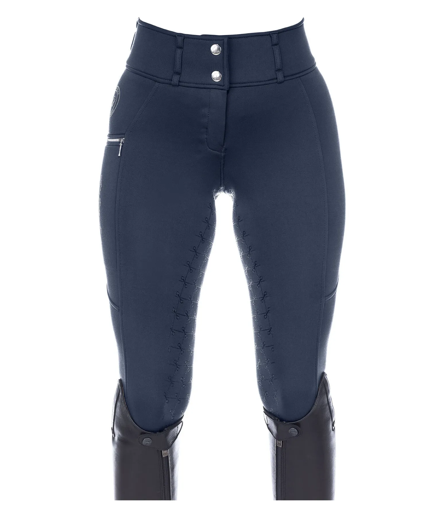 Pantalon d’équitation thermique avec fond intégral grip en silicone. Matière stretch respirante, extensible dans 4 directions. Séchage rapide. Intérieur molletonné. Imprimés Felix Bühler. Ceinture large avec passants. Une poche latérale zippée pour téléphone portable et une poche arrière zippée. Aucune couture au niveau des genoux. Bas de jambe extensible. 60 % polyester, 33 % polyamide, 7 % élasthanne.