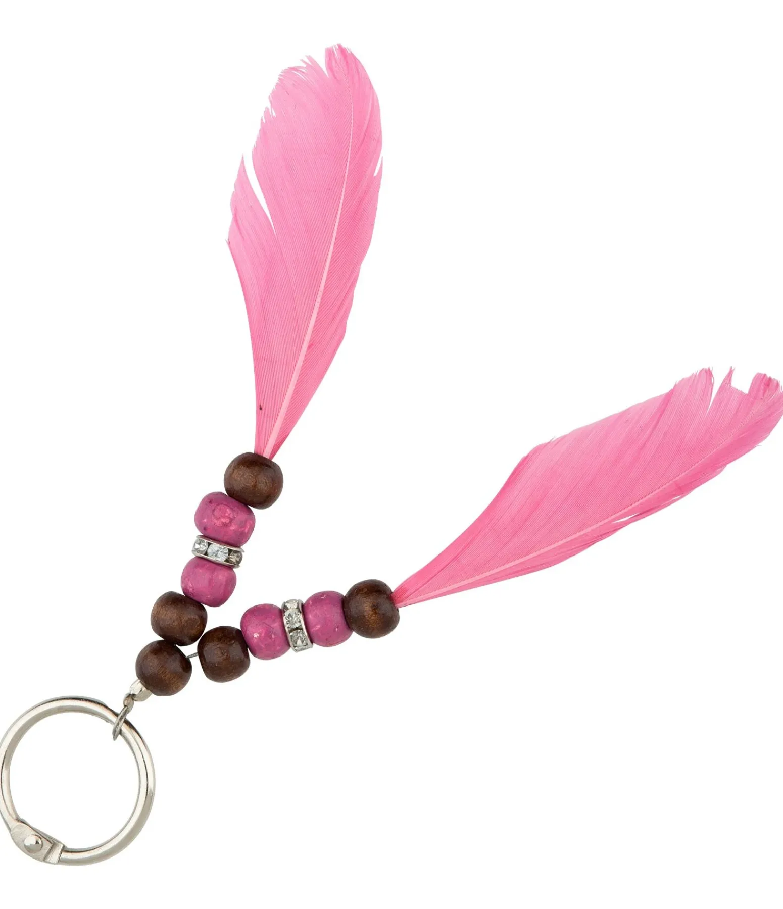 Superbe porte-clés avec perles et plumes pour décorer bridons, licols, colliers de chasse, etc. Anneau pour un accrochage facile et rapide.