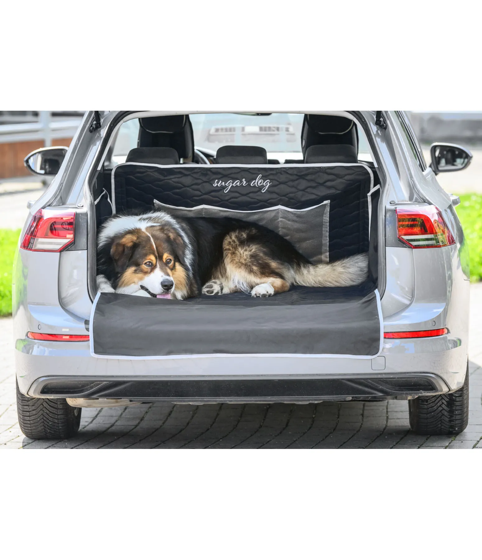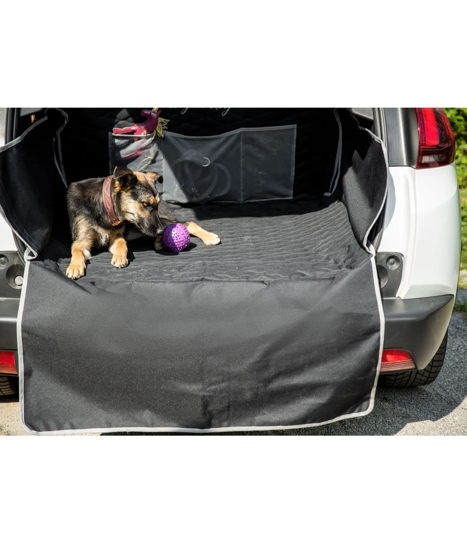Protection déperlante, résistante et anti-salissures pour coffre de voiture. Le rembourrage fin en polyester Oxford en fait un couchage confortable pour le chien. Bandes auto-agrippantes sur les côtés et sangles de fixation aux appuie-têtes de la banquette arrière sur le fond. Avec tapis dépliable pour éviter les rayures sur le pare-chocs. Espaces de rangement en filet. 171 x 185 cm (protection pare-chocs incluse). 100 % polyester.