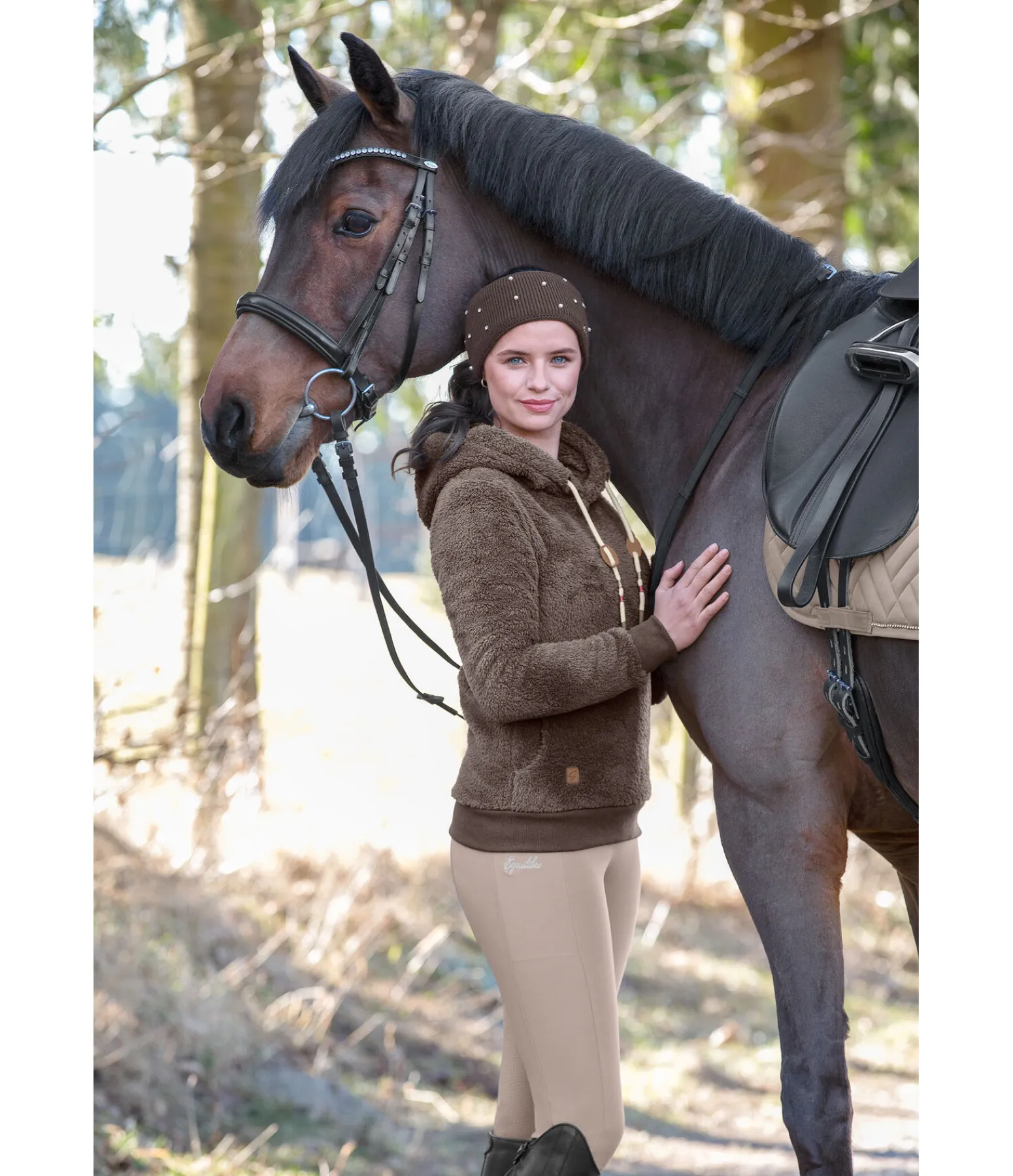 Sweat à capuche douillet en polaire Teddy douce avec 2 poches latérales. Finition bord-côte en bas des manches et à la taille, capuche réglable, badge logo STEEDS à la taille. 100 % polyester.