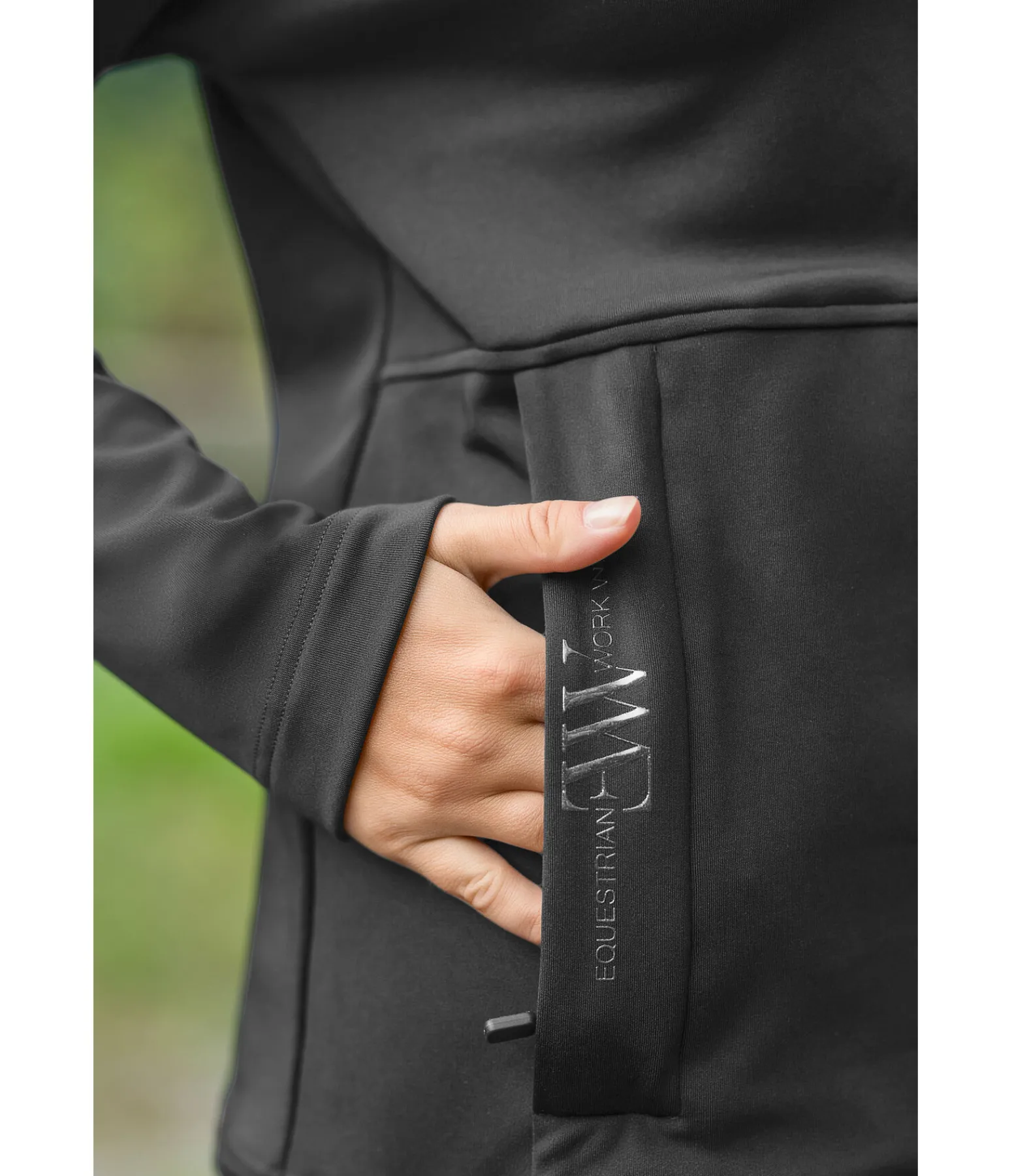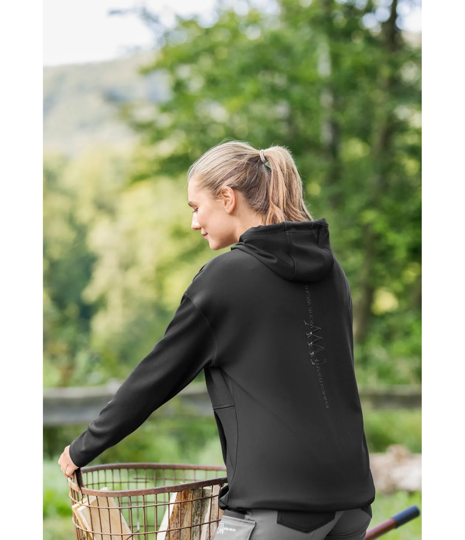 Sweat à capuche décontracté en coupe oversize tendance avec grand imprimé dans le dos. La matière technique lisse à l’extérieur et molletonnée à l’intérieur est respirante, à séchage rapide et anti-saletés. Idéal pour les travaux à l’écurie ! 2 larges poches zippées, un col protégeant du vent, une taille réglable et une capuche complètent cet article indispensable pour toute amatrice de plein air !