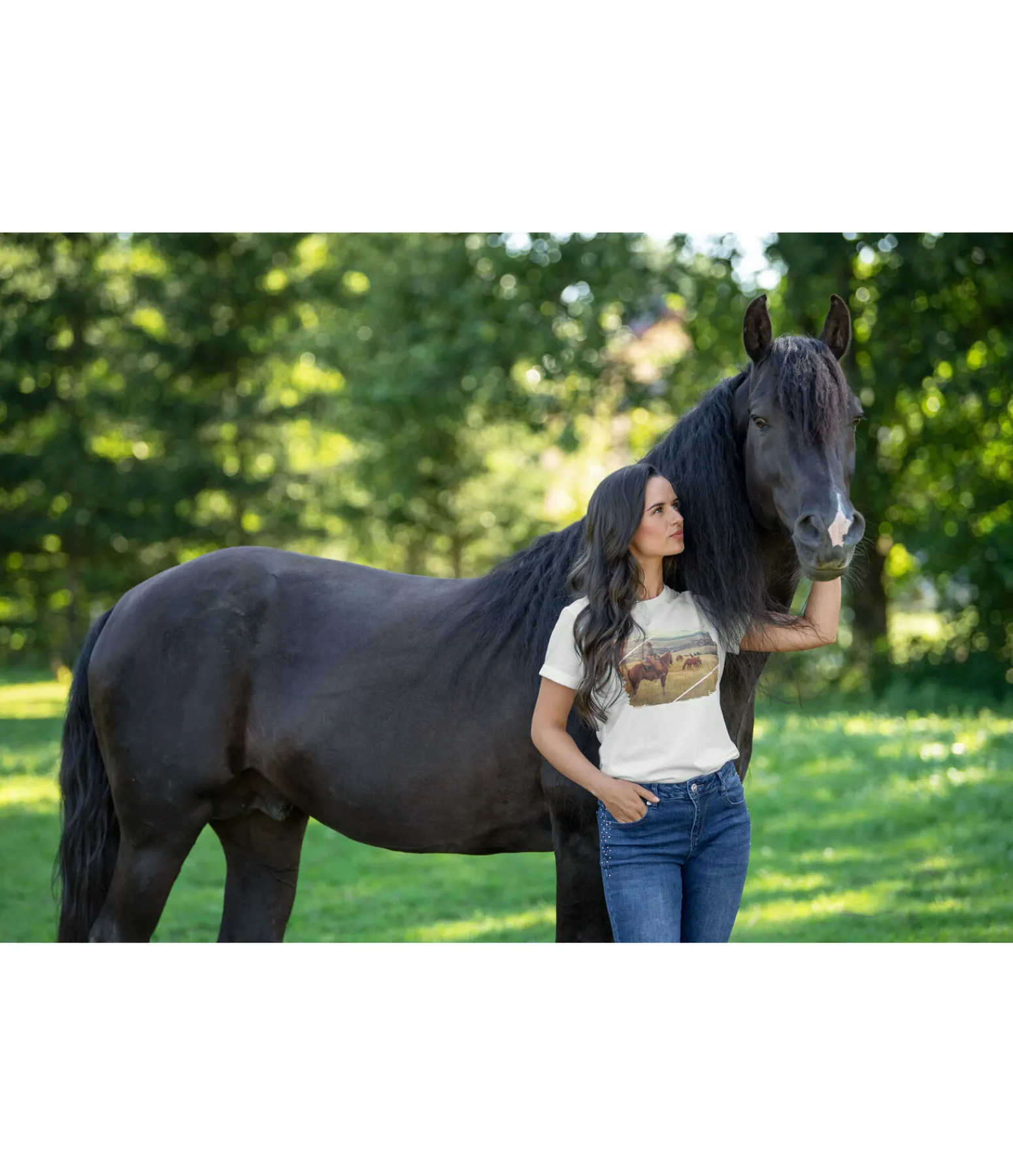 T-shirt doux à col rond. Motif sur la poitrine. Matière respirante. 65 % polyester, 35 % coton.
