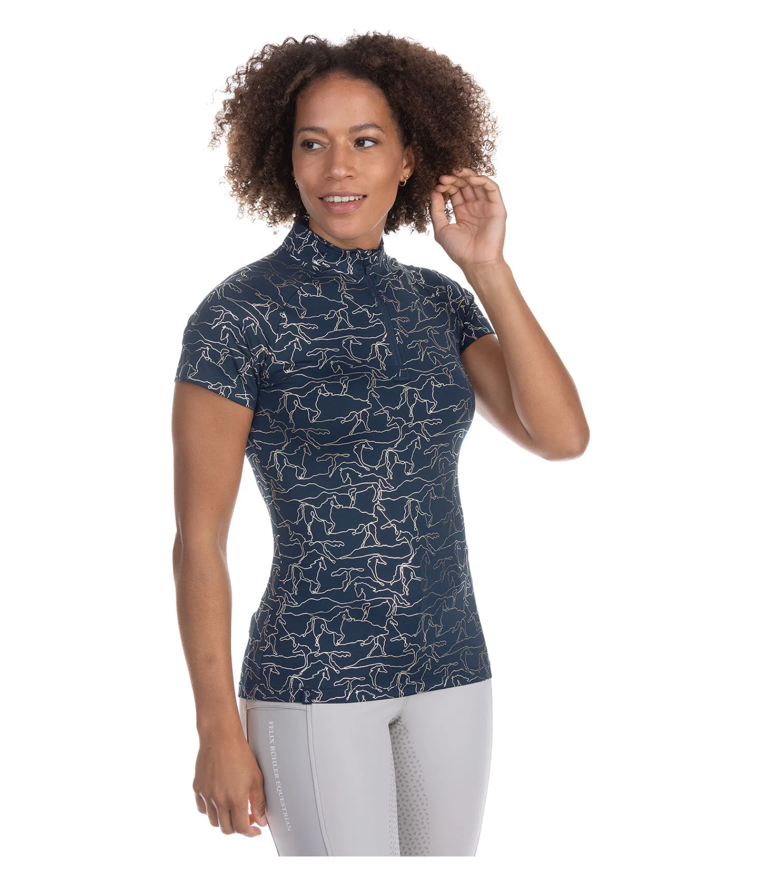 T-shirt technique. Manches raglan. Col montant zippé avec protège-menton. Imprimé argenté all-over. Matière respirante à séchage rapide. 88 % polyester, 12 % élasthanne.