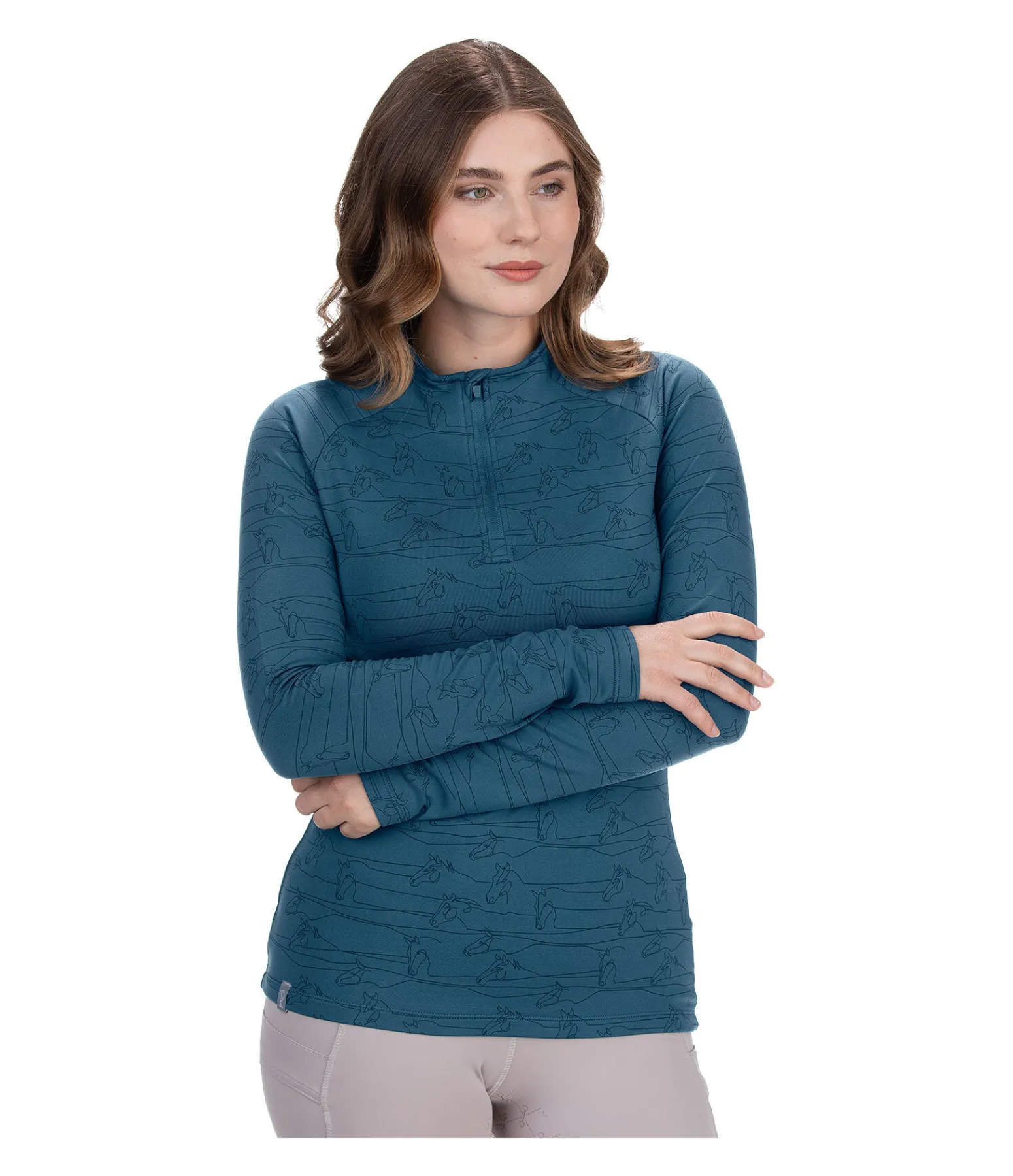 T-shirt technique à manches longues tendance avec intérieur molletonné et superbe imprimé all-over ton sur ton à motif cheval. Avec manches raglan. Col montant zippé avec protège-menton. Respirant et à séchage rapide. 90 % polyester, 10 % élasthanne.