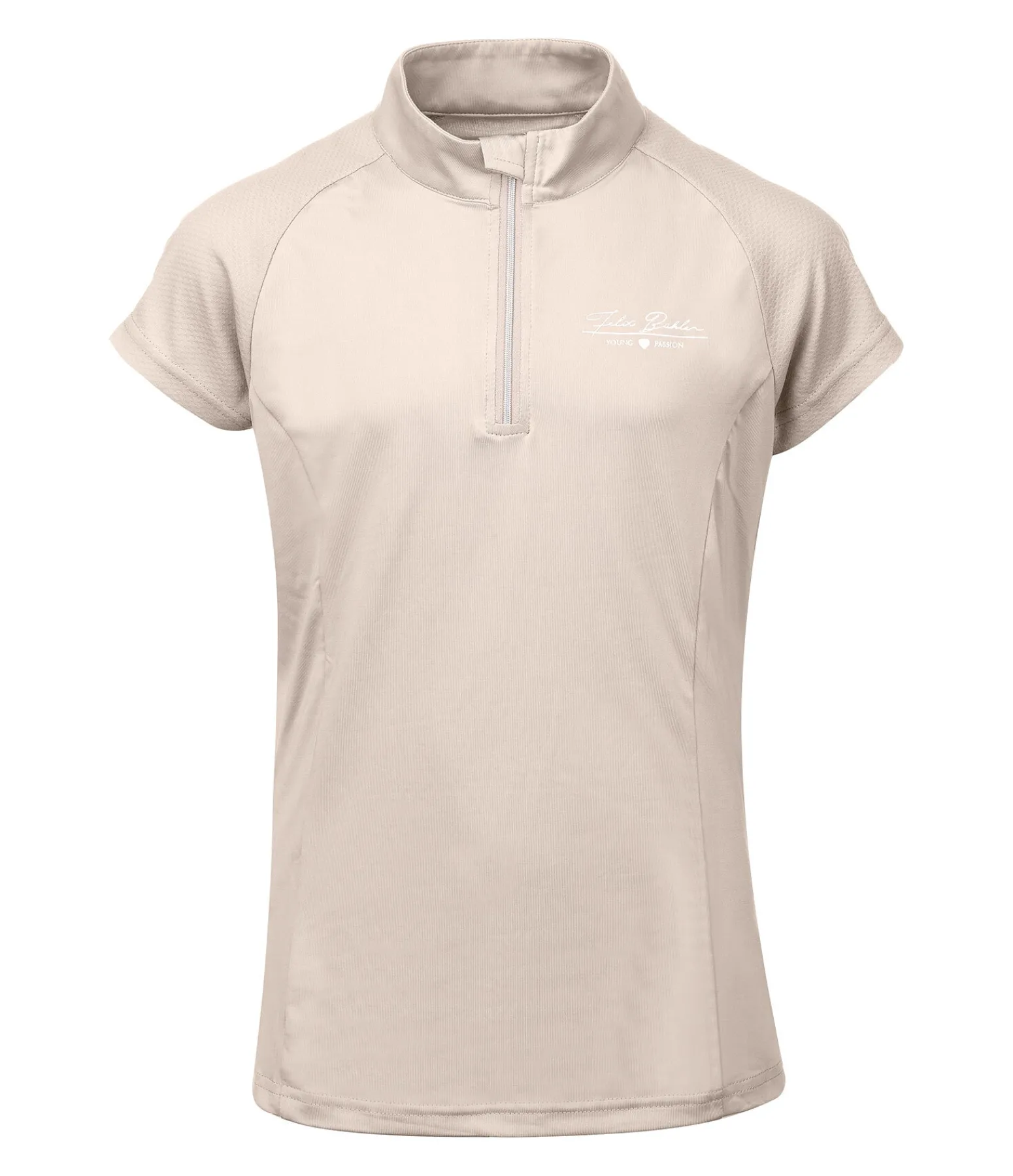 T-shirt technique et sportswear. Matière respirante à séchage rapide. Manches raglan en mesh. Col montant zippé avec protège-menton. Logo discret imprimé sur la poitrine. Motif cheval au dos, sous le col. 88 % polyester, 12 % élasthanne.