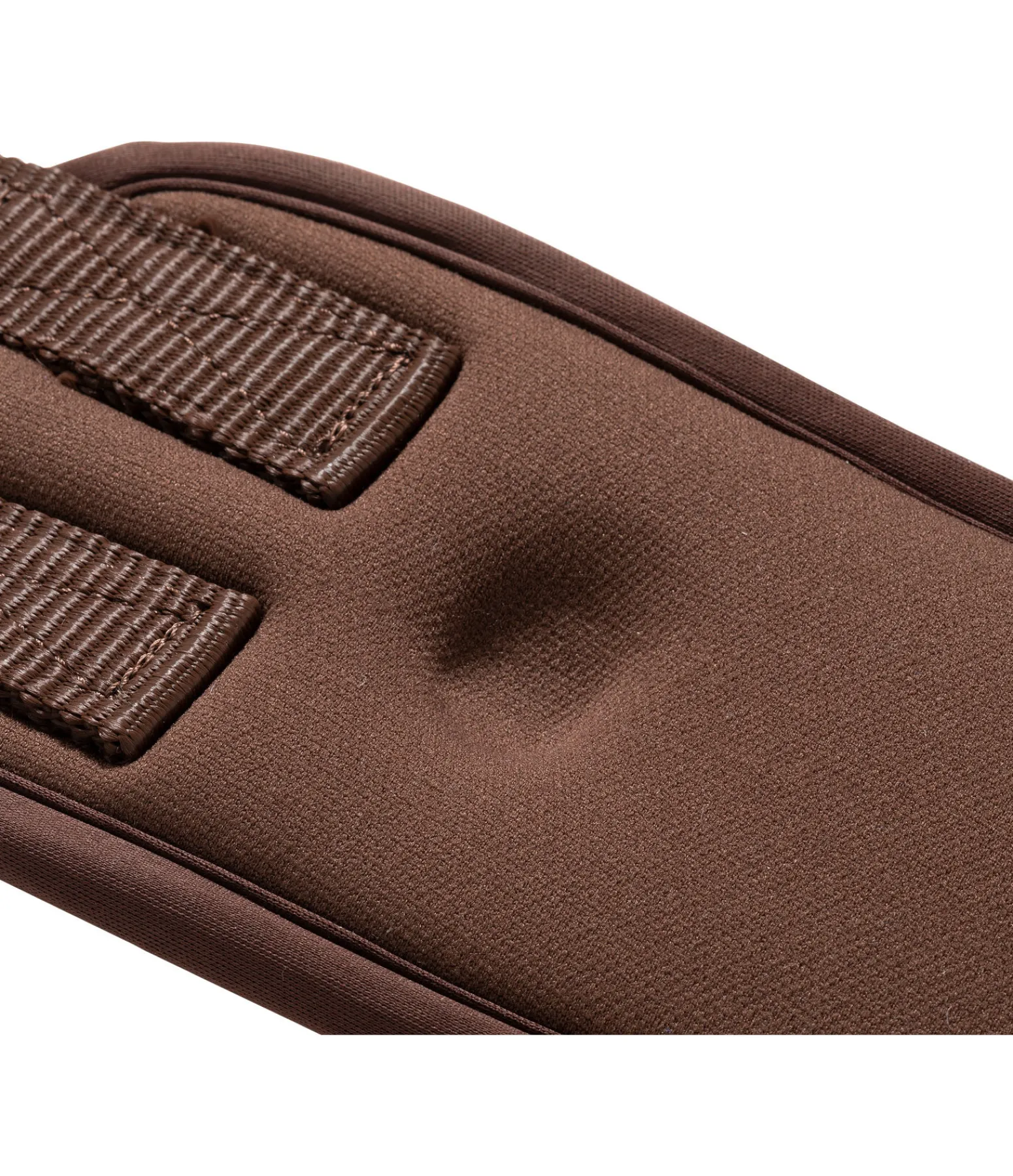 Sangle en mousse à mémoire de forme douce et absorbant les chocs, qui cède sous la pression puis revient à sa position initiale. Housse en caoutchouc chloroprène durable. Coupe anatomique avec large surface de contact et anneau central en D pour fixer facilement un enrênement. Avec empiècements élastiques d’un côté. Boucles à rouleau en acier inoxydable. Largeur 8,5 à 10,5 cm.