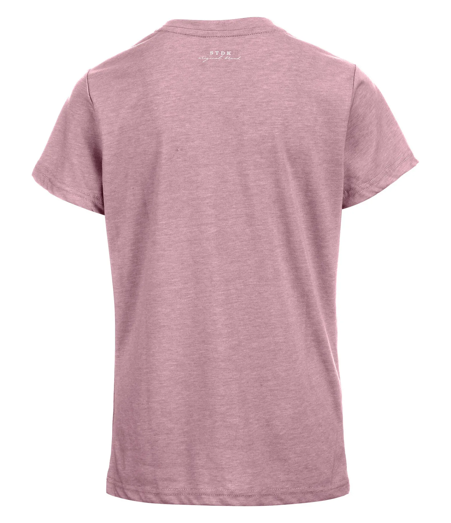 T-shirt pour vraies cow-girls avec plissé au col et superbe motif pailleté sur la poitrine. 65 % polyester, 35 % coton.