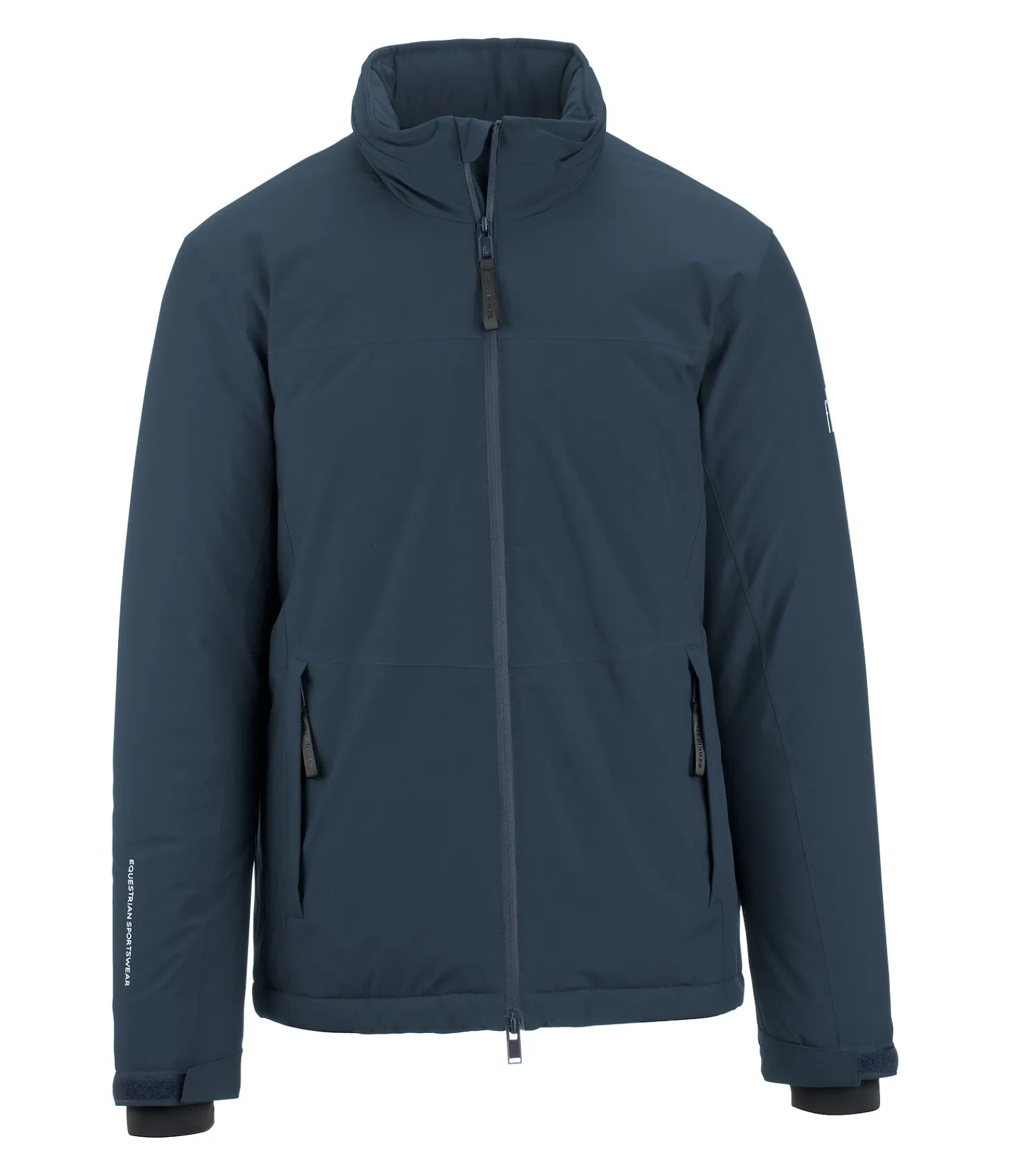 Veste d’équitation d’hiver technique, imperméable (8.000 mm) et coupe-vent. Matière respirante. Col montant. Capuche amovible. Doublure intérieure chaude. Fermeture à glissière double sens étanche avec protège-menton. Deux poches zippées dissimulées latérales. Impression et logo discrets sur les manches. Bas des manches élastiqué et ajustable par patte auto-agrippante. Ourlet réglable. Doublure intérieure avec impression Felix Bühler all-over. 100 % polyester.