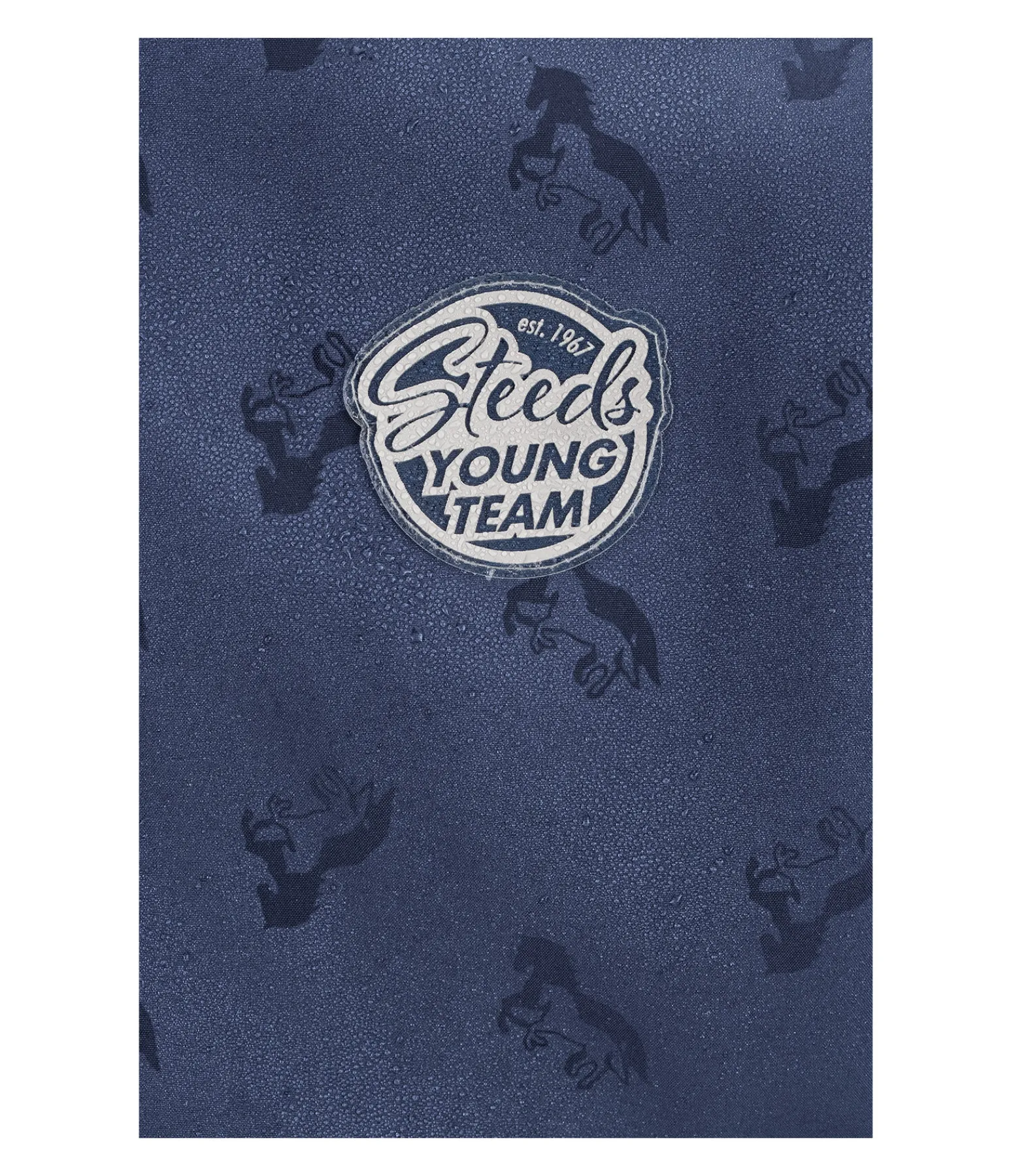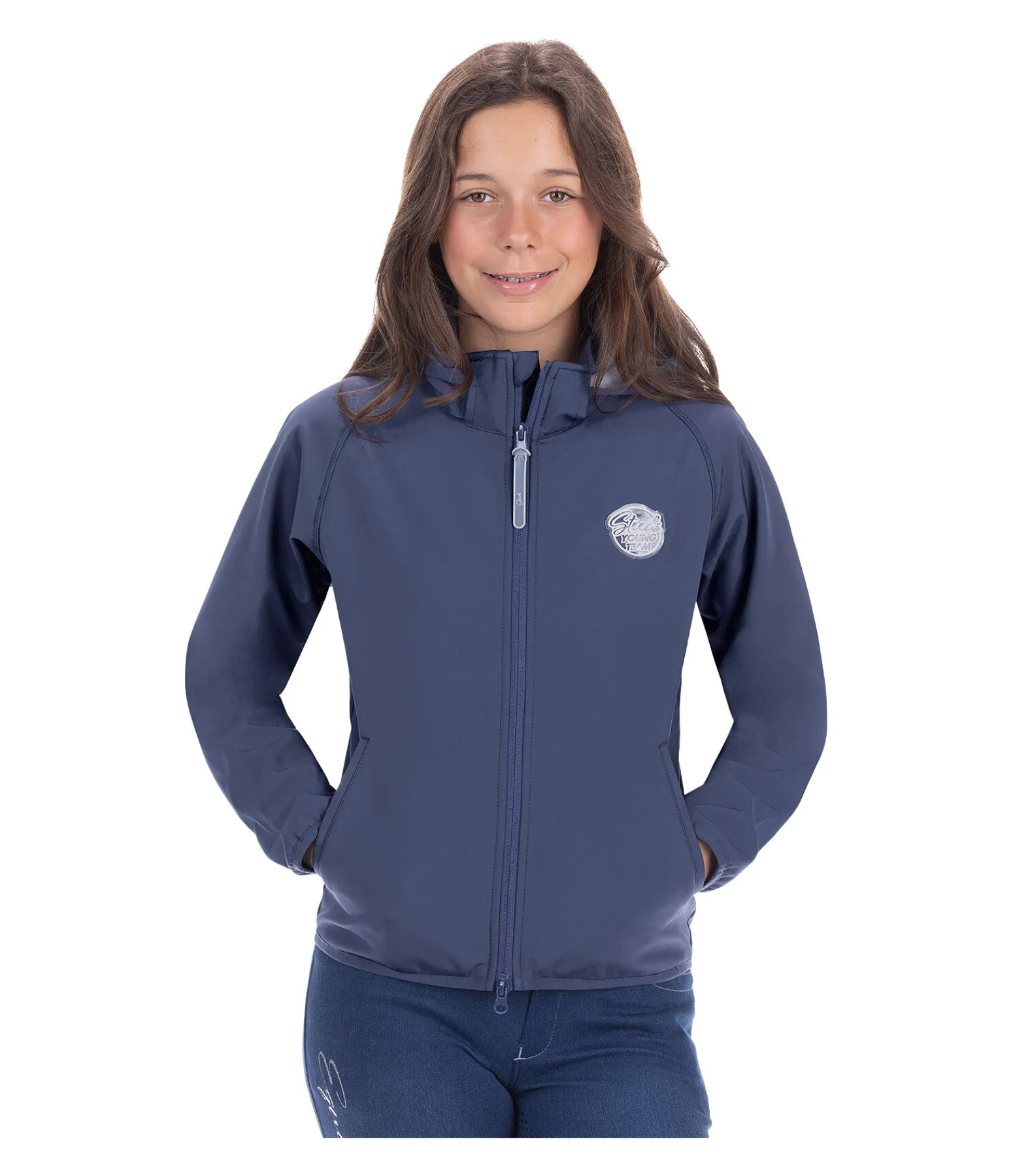 Veste d’équitation softshell, déperlante et coupe-vent. Motif cheval all-over apparaissant au contact de l’eau. Doublure intérieure en polaire douce. Capuche doublée amovible. Bouton-pression pour fixer la capuche dans le dos. Matière respirante. Fermeture à glissière double sens avec sous-patte et protège-menton. Deux poches latérales. Bas des manches et ourlet élastiqués. 94 % polyester, 6 % élasthanne, intérieur 100 % polyester.
