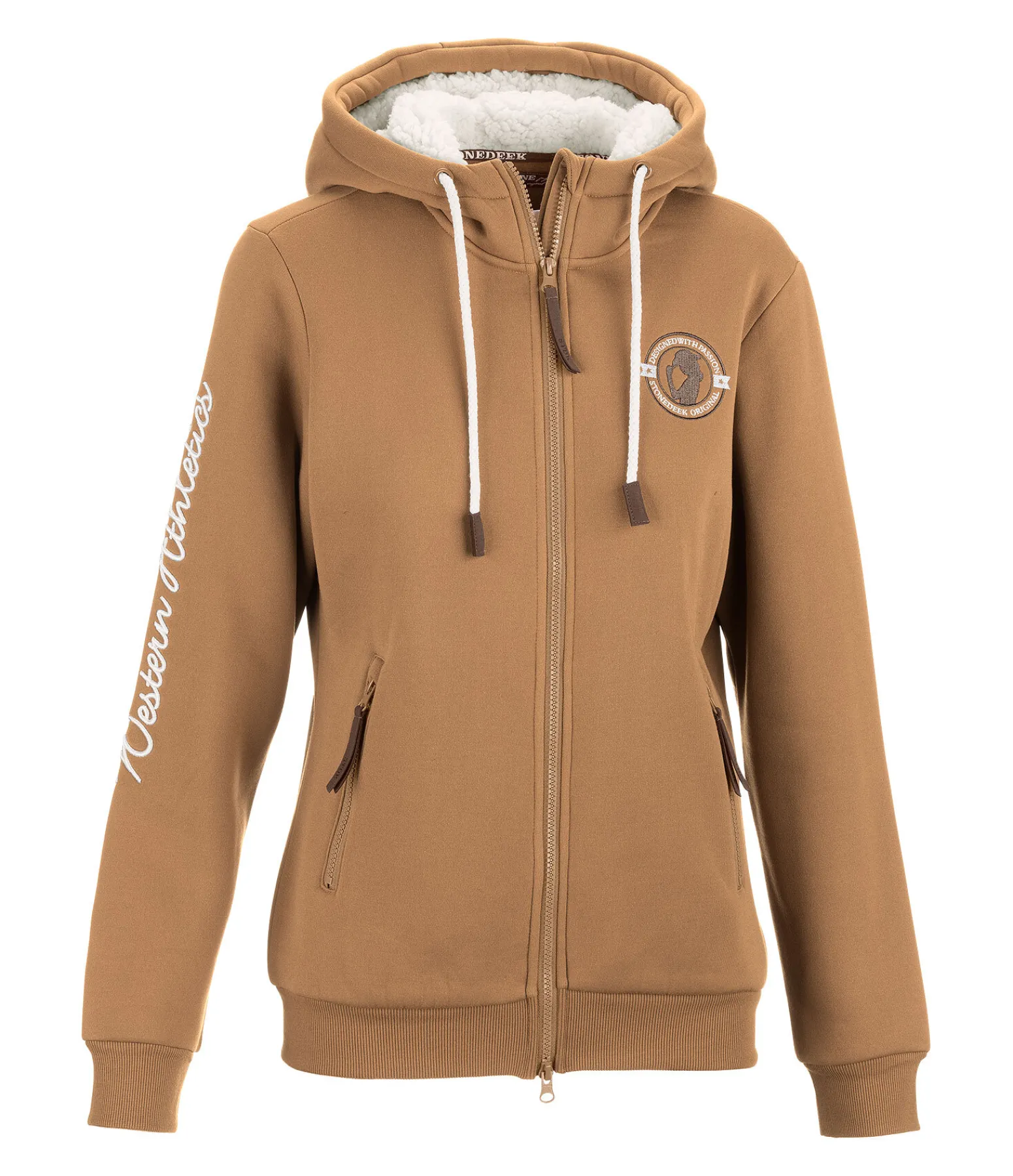 Veste sweat à capuche confortable et légèrement doublée avec cordon de serrage. Poignets et bas de veste en matière côtelée. 2 poches avant zippées. Fermeture à glissière double sens. Superbe broderie sur le bras. 100 % polyester.
